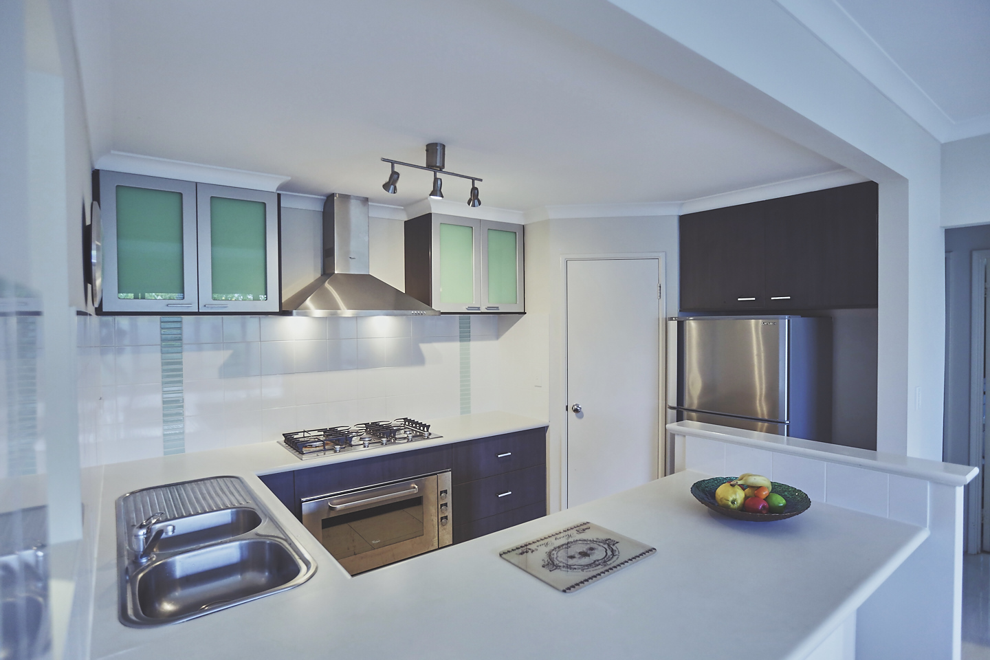 It includes a good sized kitchen with a large oven, 5 x burner stove with fish/wok burner, dishwasher, stainless steel appliances and breakfast bar.