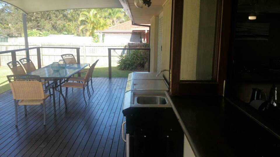 The huge back deck is completely covered by a Dry-Z waterproof shade sail keeping you dry on those rainy days and away from those nasty UV rays when the sun is out.