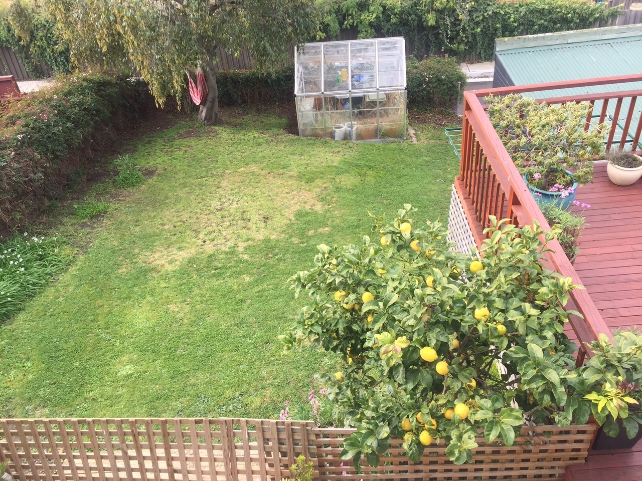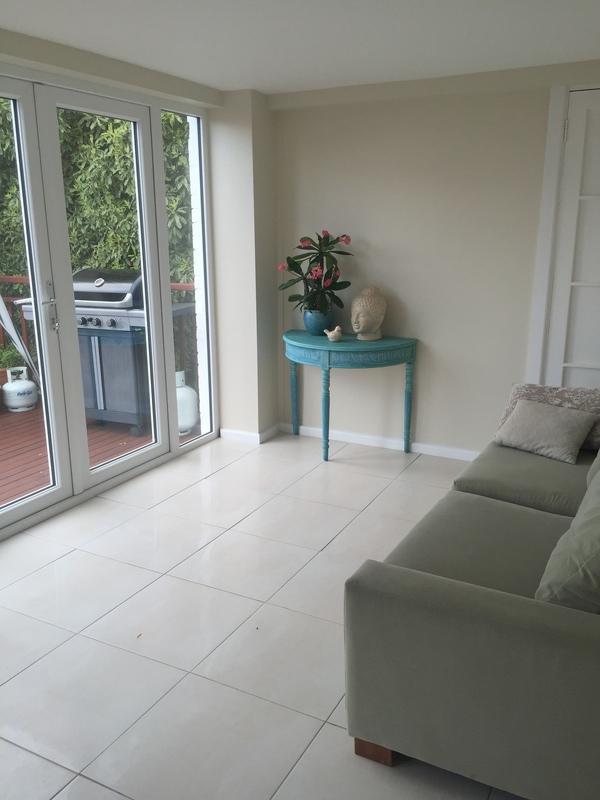 Small separate lounge with French doors opening onto large sundeck. Covered outdoor sitting area with small rear garden.