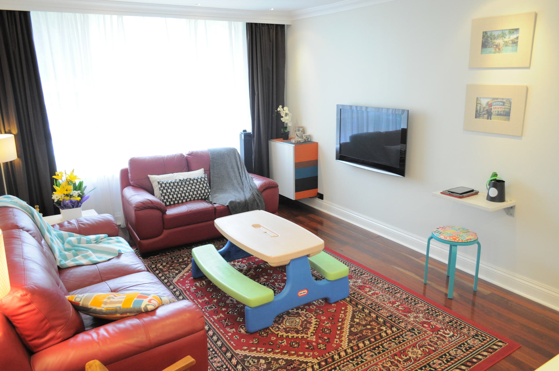 + The large living room incorporates dimmable lights with built in cabinet for your DVD and electrical storage. A large reverse cycle A/C services this area.