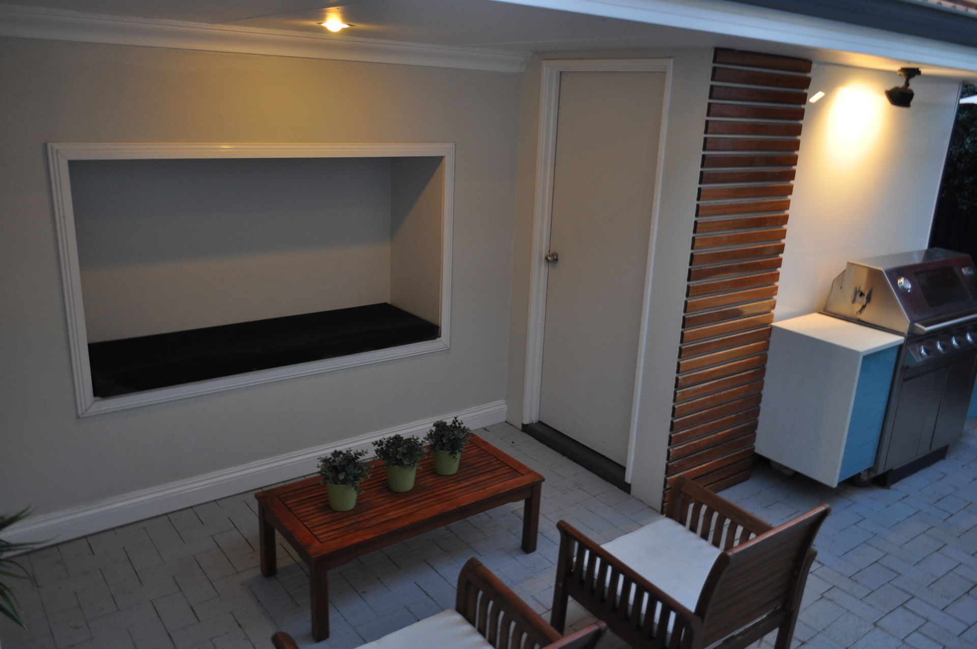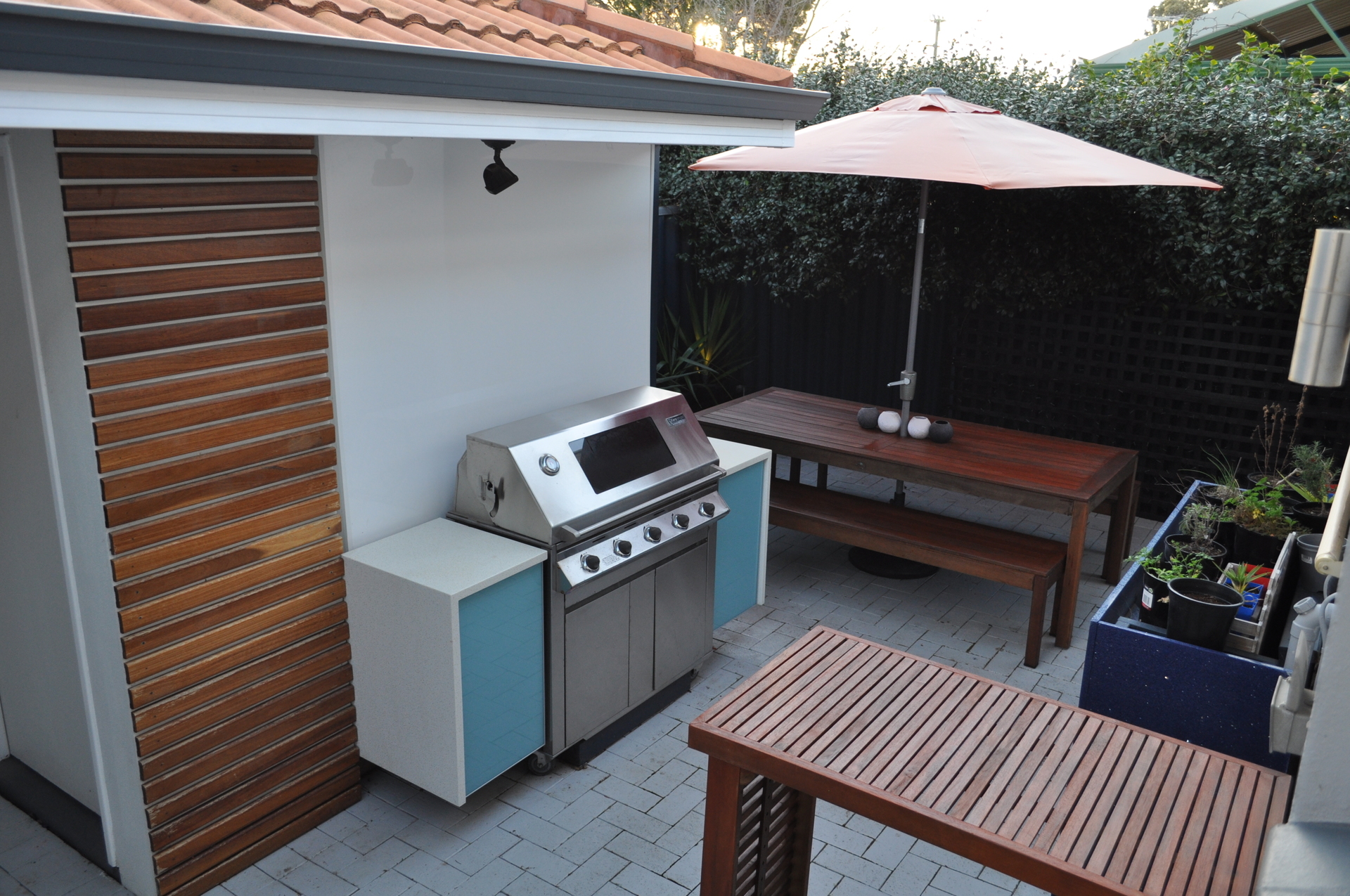 + Secure easy care rear yard with wall mounted cabinets to house your BBQ.