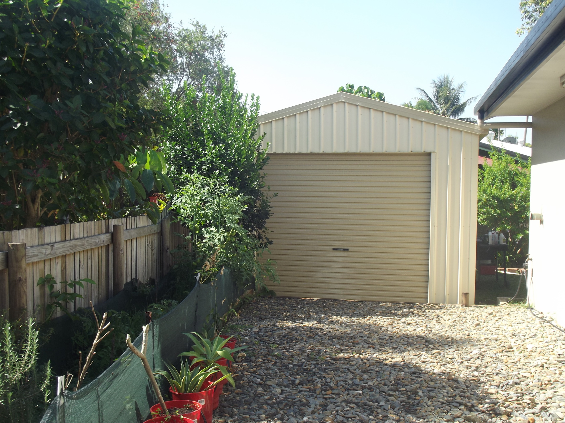 Double lock up garage to the side of the house and a large shed out the back to store all the important toys.