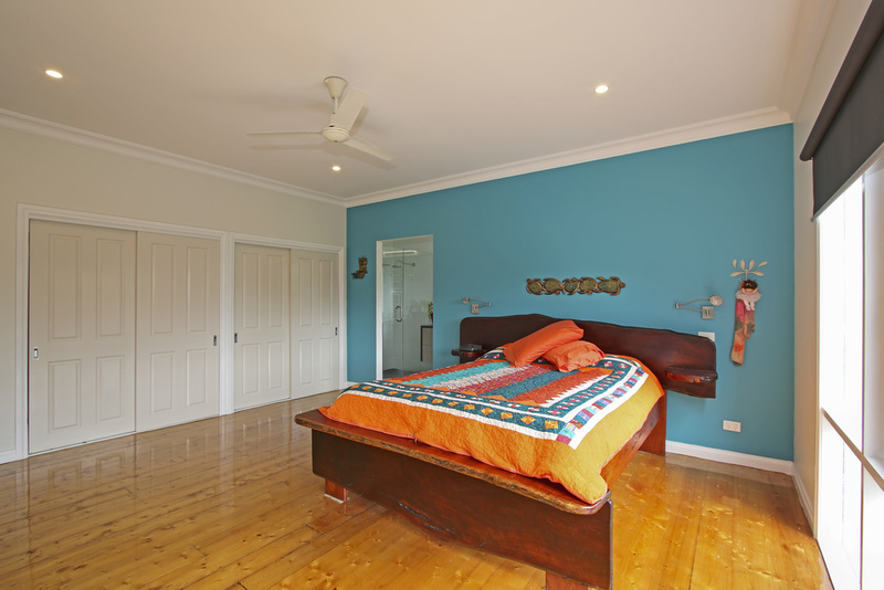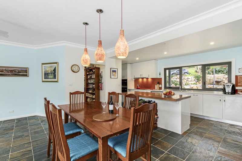 The house has been recently renovated with either three bedrooms and two living areas or four bedrooms and a study. There is good storage and the bathroom and ensuite are generously sized and modern. The Kitchen is a gourmet delight with excellent storage and new appliances. The choice of heating is with either the wood heater or the split system with ceiling fans in each room. There is a north facing spotted gum decking and lovely grassed BBQ area with beautiful mature golden elm to shelter under.