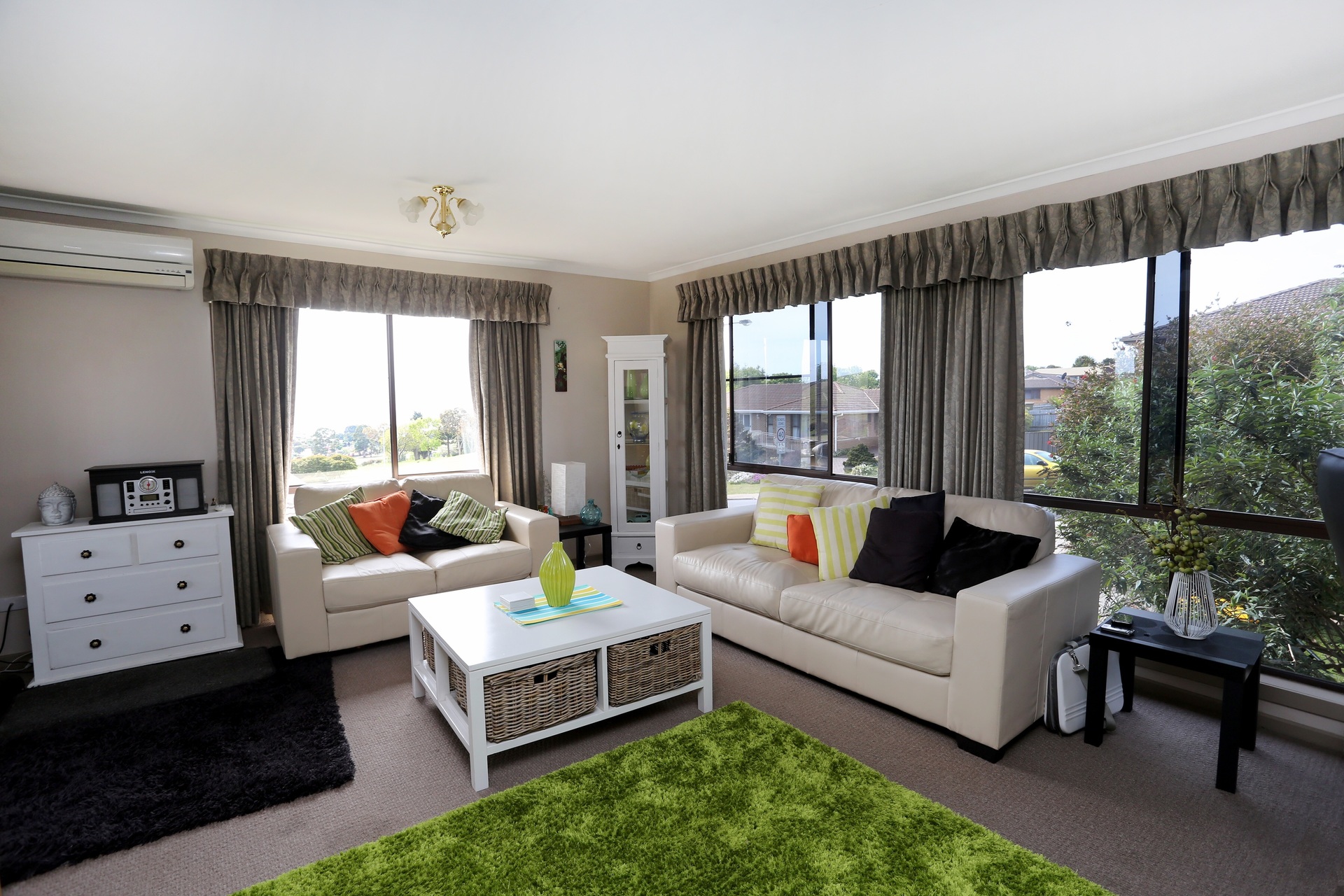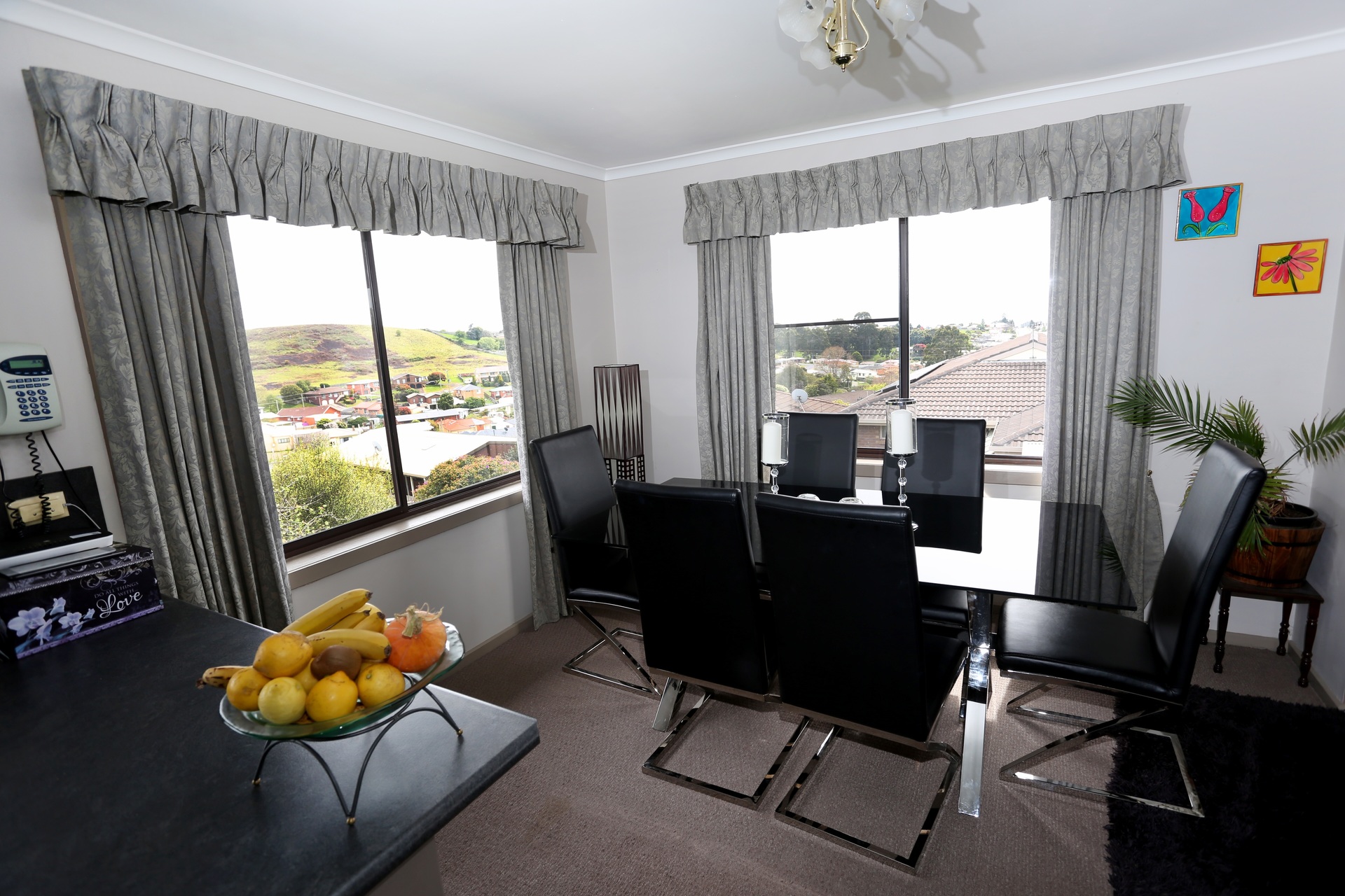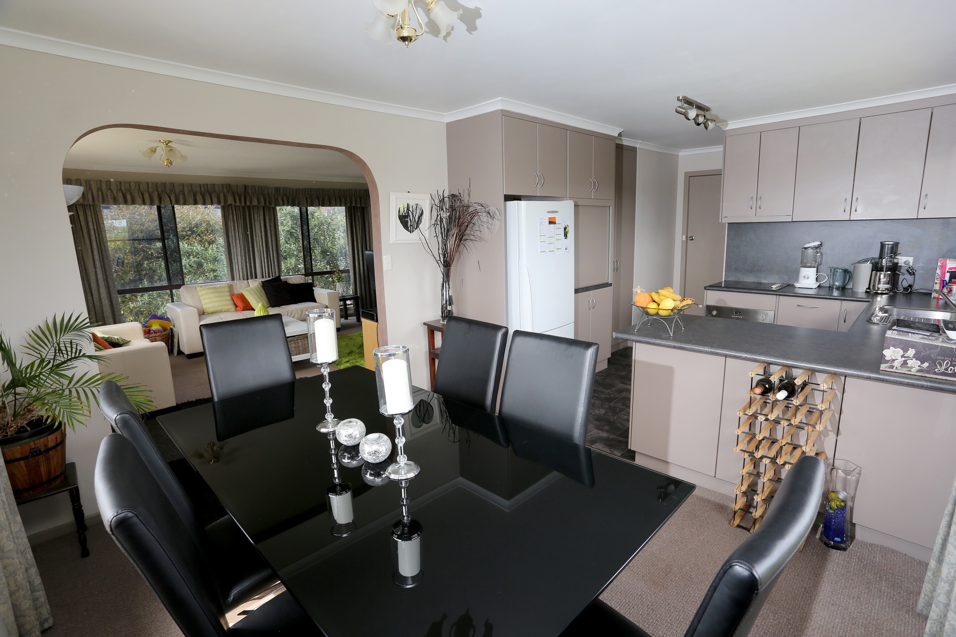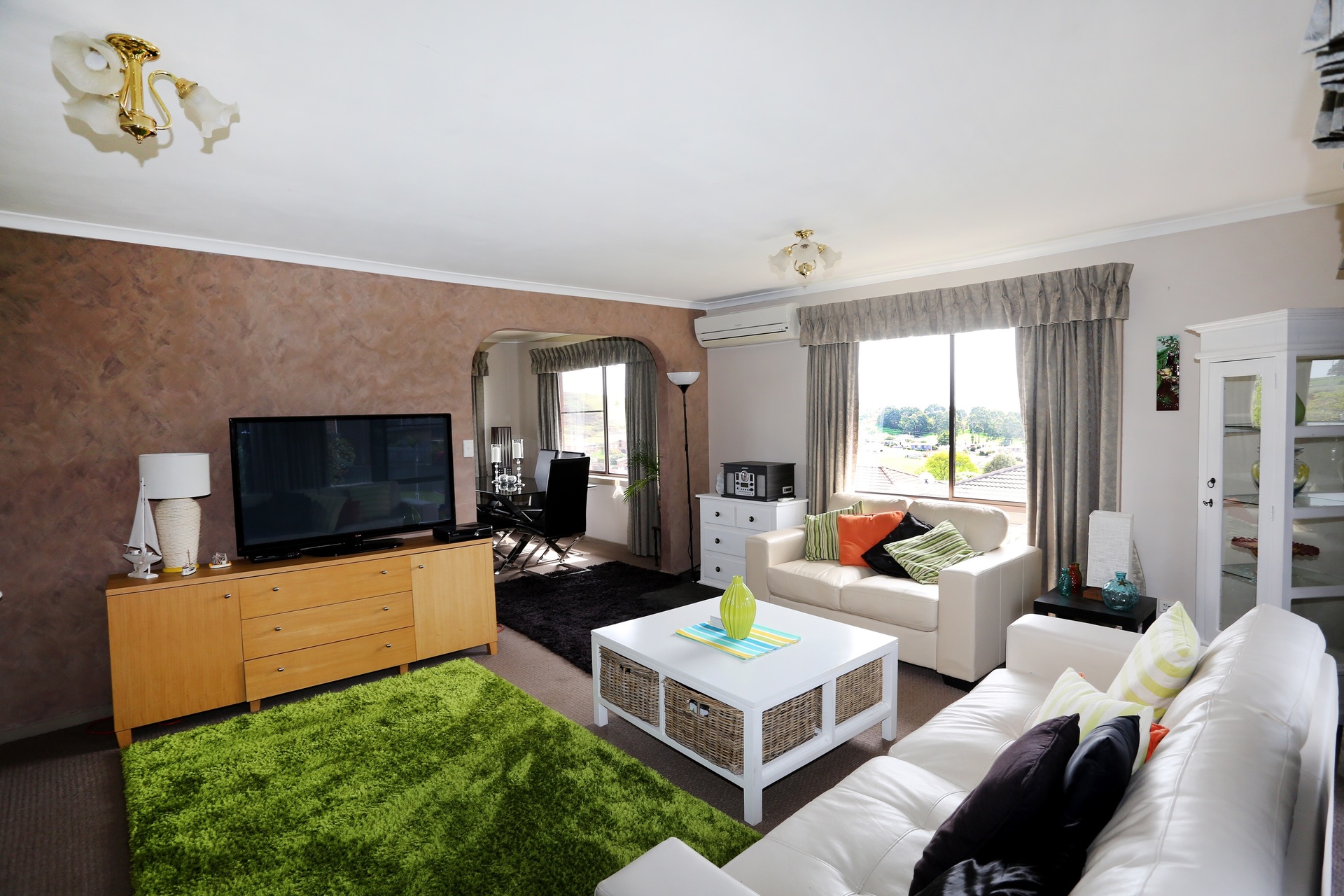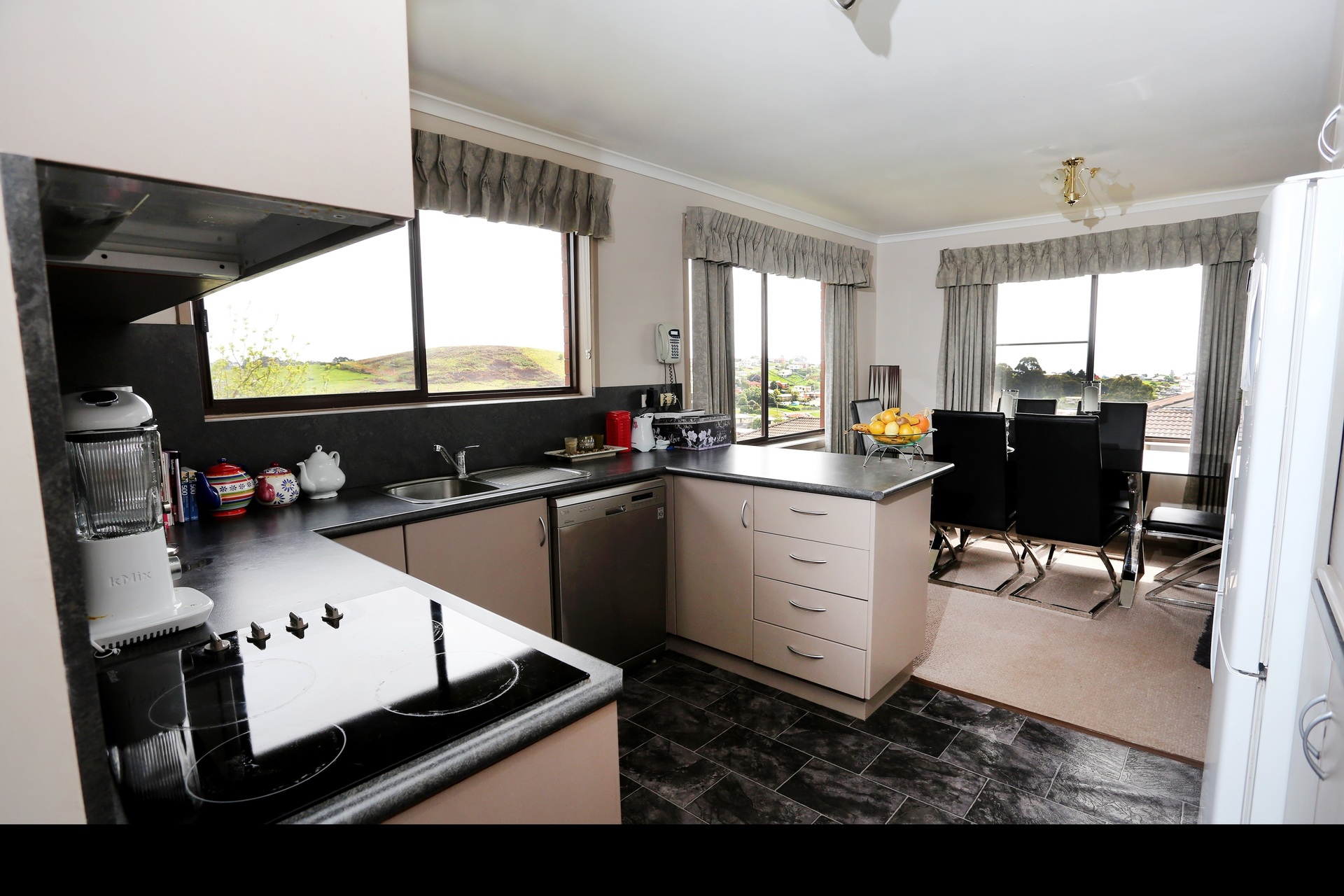 The home has sun filled living areas all day and enjoys lovely views over the town to the sea.