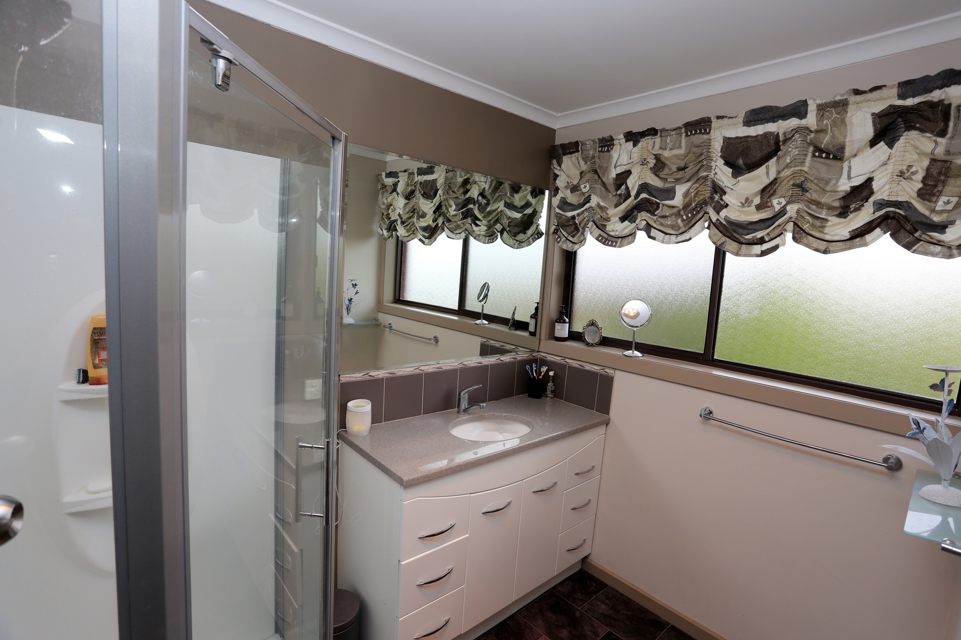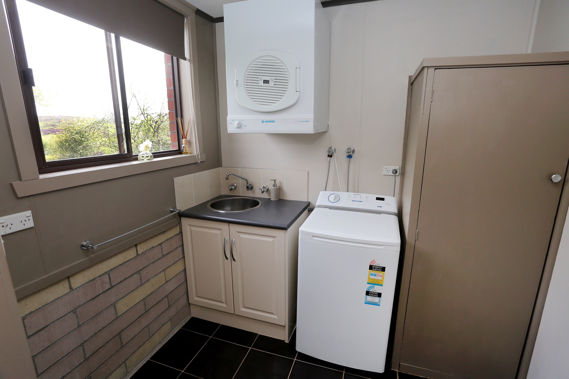 Large private fully fenced backyard with plenty of room for entertaining. Established low maintenance garden including several fruit trees.