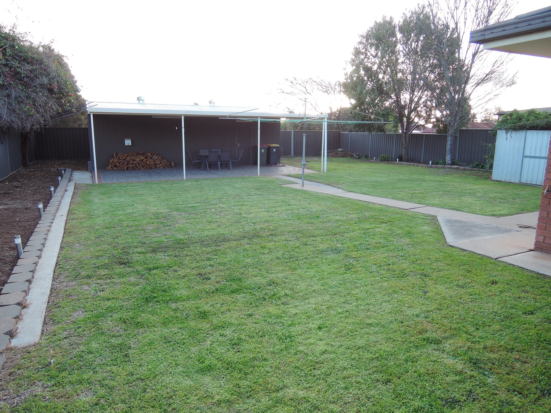 A large level fully fenced rear yard with a well constructed 9m x 6m modern shed with plenty of lights and power points, hot and cold water and a toilet. There's a 9m x 4.5m covered entertaining/BBQ area with lights attached to shed.