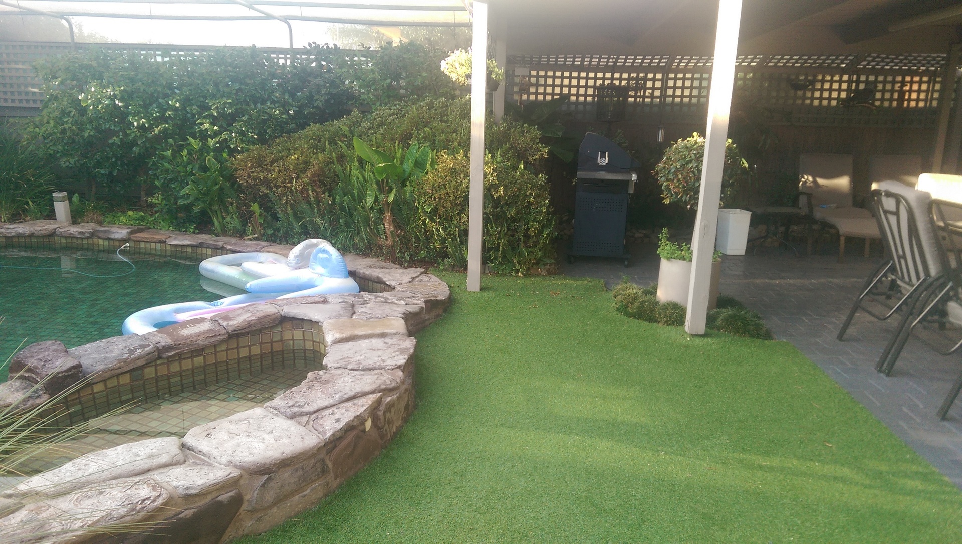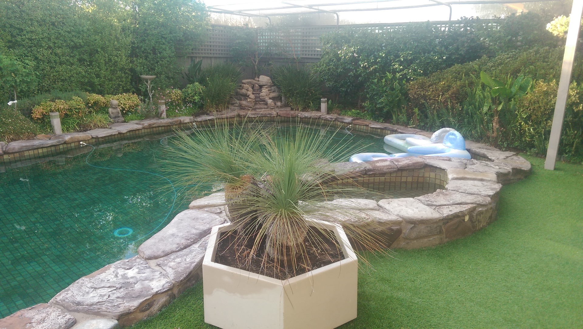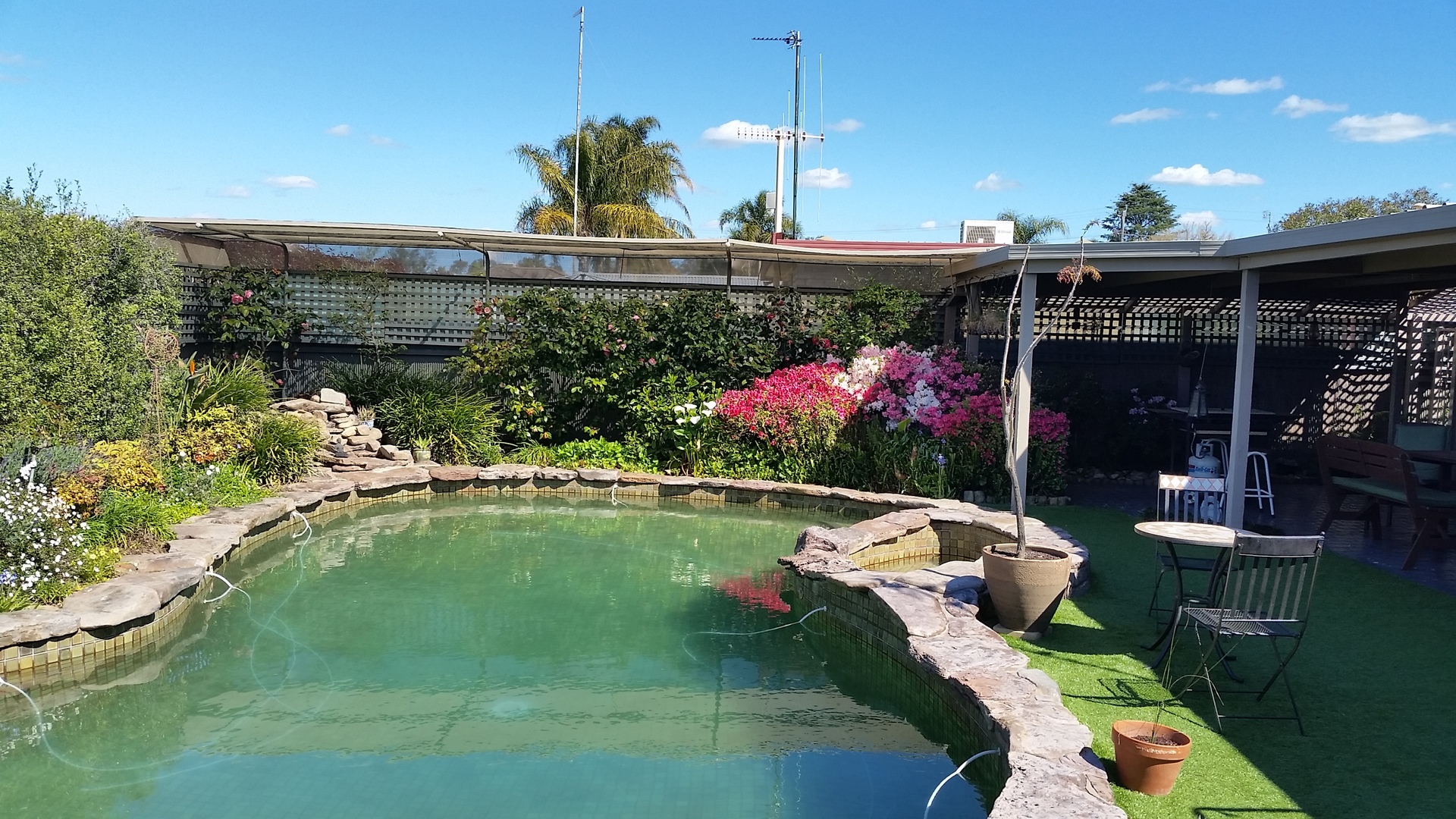 The back yard of this property is simply stunning. Central is the inground, rock bordered Guseli salt swimming pool ,complete with a spa and water fall. It is surrounded by lush gardens beds, a fernery and synthetic turf.