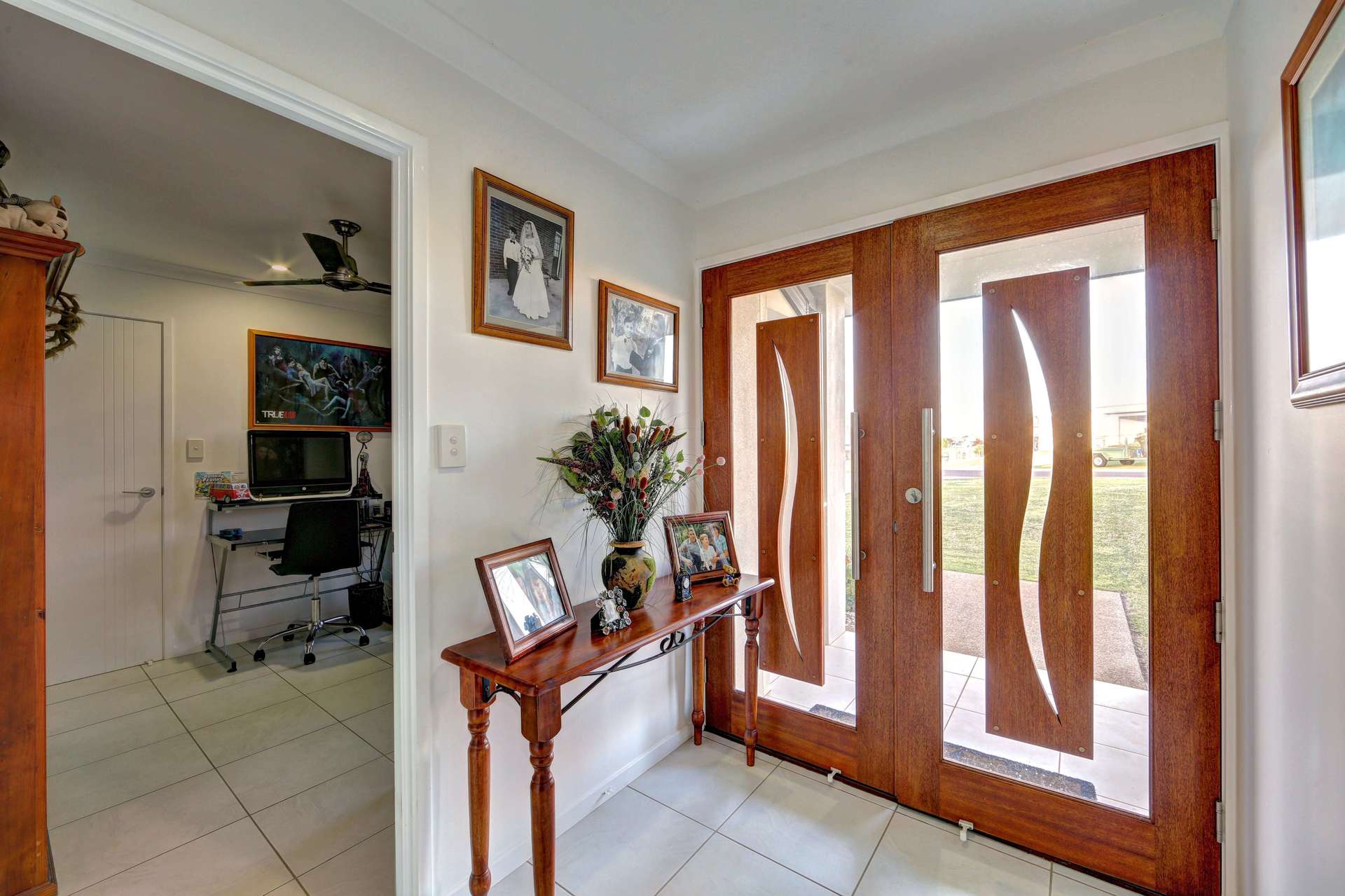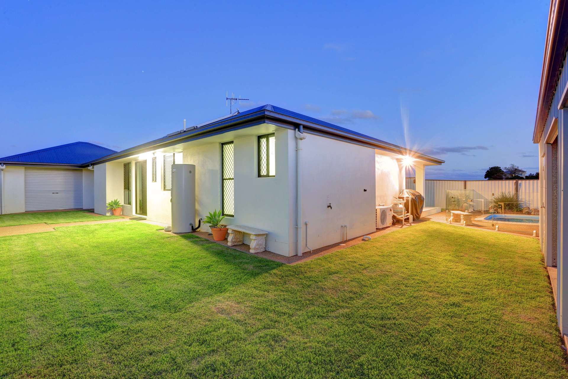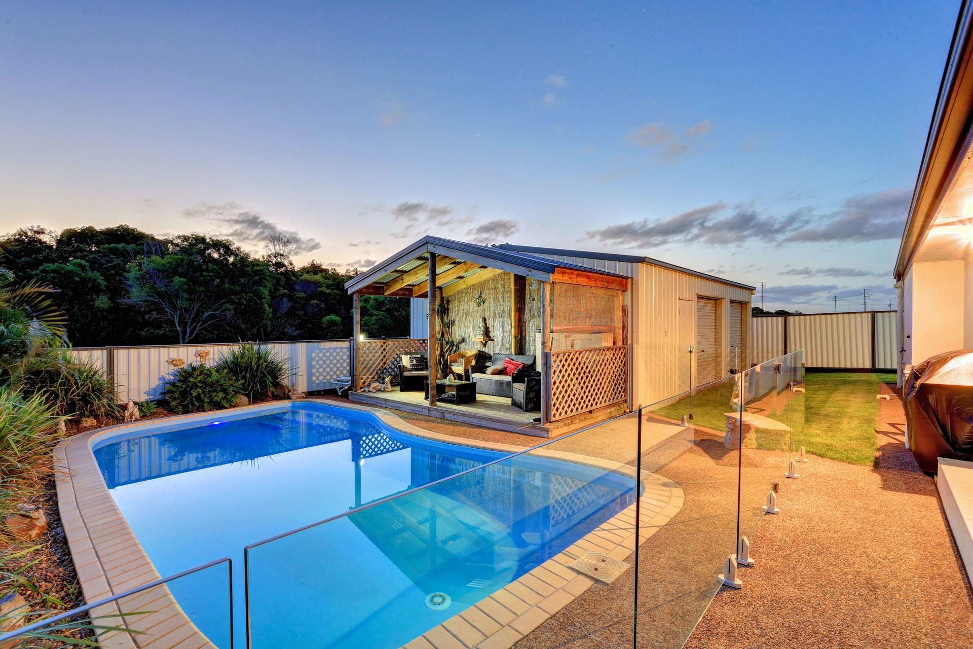 This master built home is just 3 years old, with 4 spacious bedrooms,main with ensuite opens to alfresco area. Has separate office, and a media room airconditioned living and dining, ceiling fans throughout. Tinted windows with security screen throughout. Solar hot water system, 3 bay shed with access through main garage. Fully colorbond fenced, large heated pool, with its own enteraining area beside the pool. You can relax around the pool and overlook the park land that backs onto the home, never have back neighbours, and plenty of room for kids to play in the parkland or go for walks around the vast parks of the estate.This is a beautiful home that is well under replacement value, only selling as have bought another property closer to family