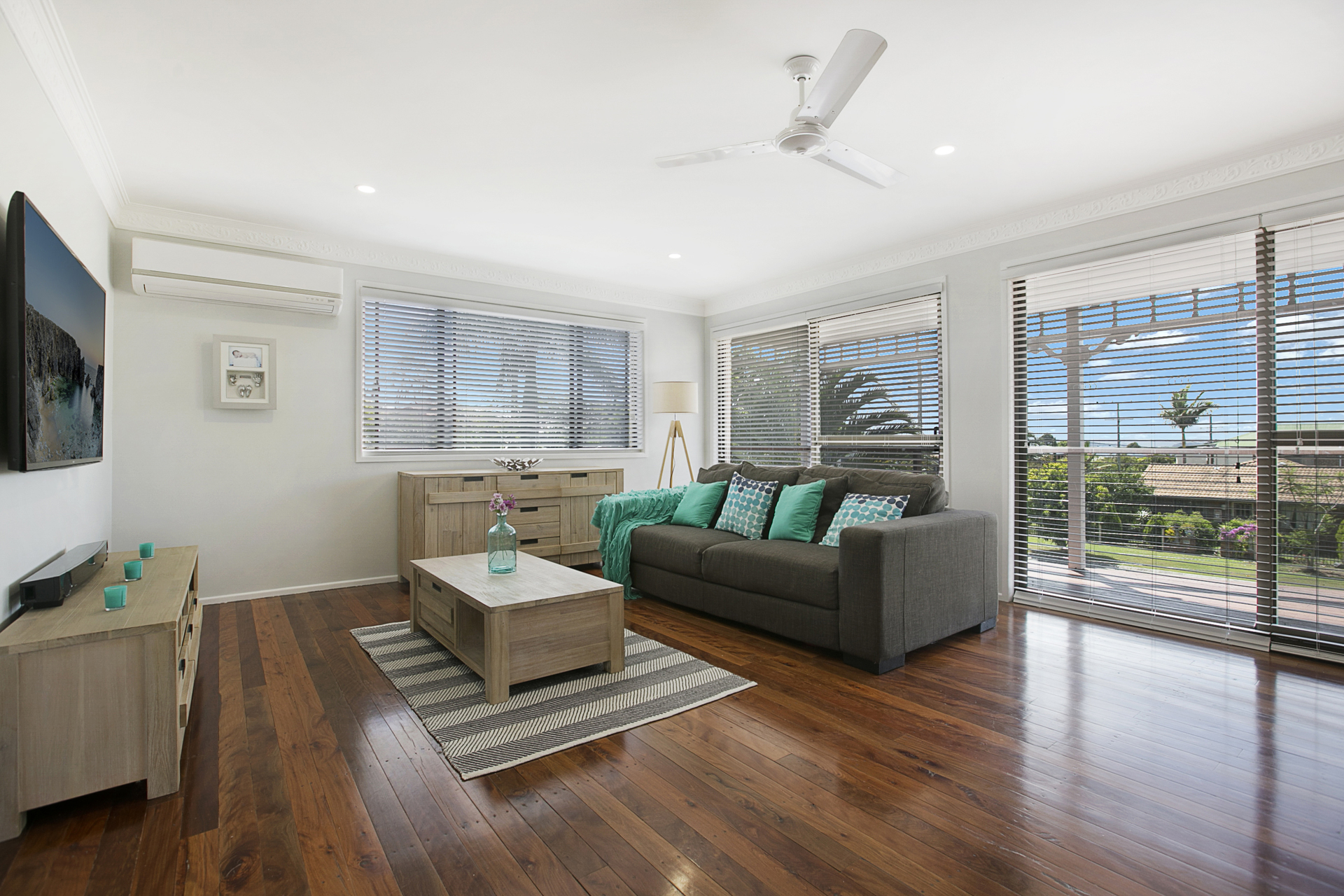 • Split system air conditioning and ceiling fans throughout