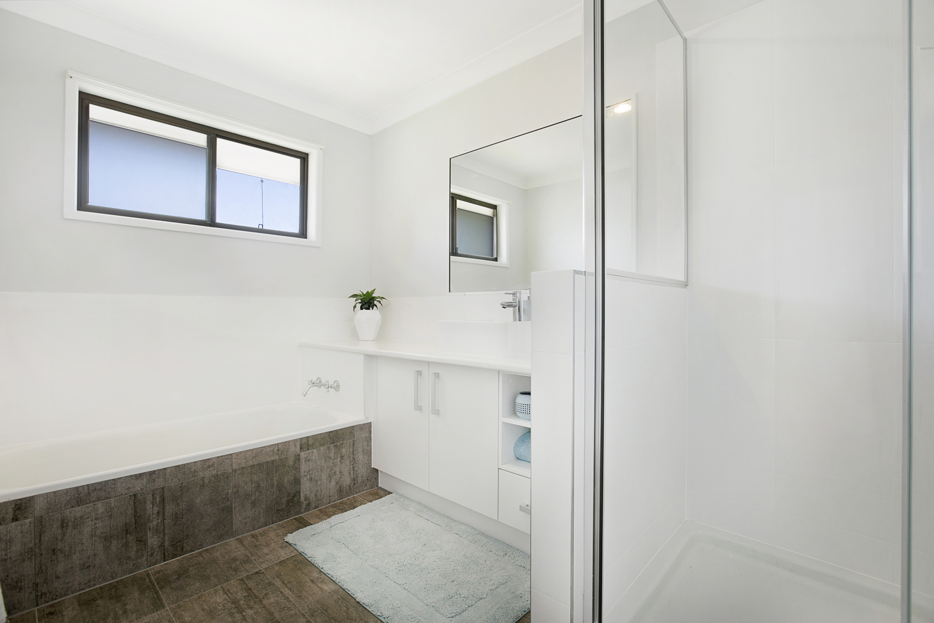 • Modern bathroom and separate toilet