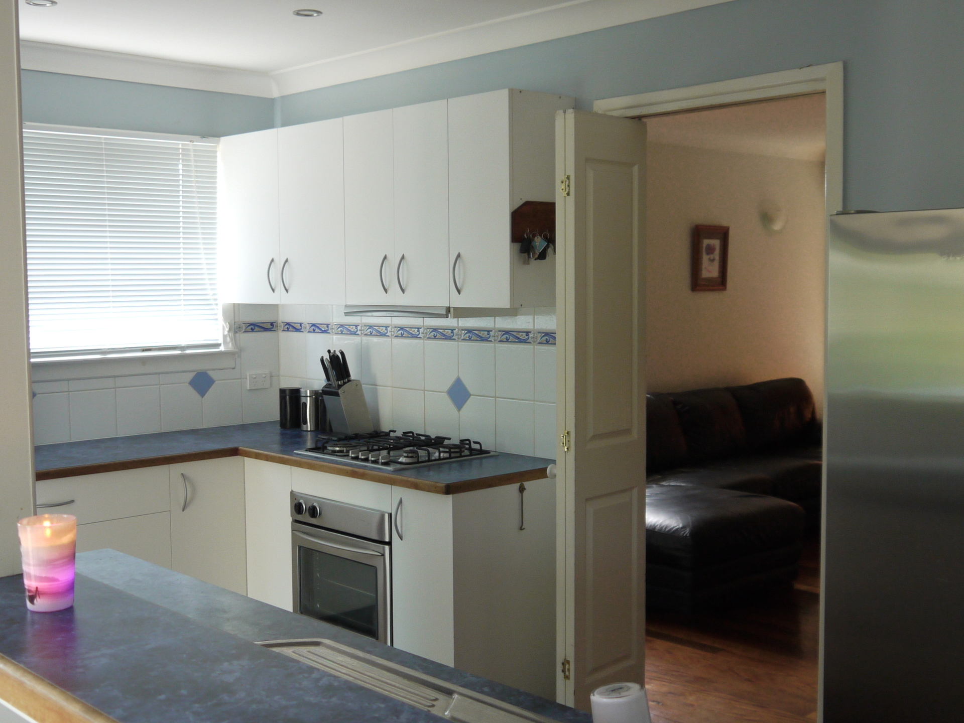 The large kitchen offers loads of bench space and easy pass through access to the dining room and out onto the deck at the back of the house.
