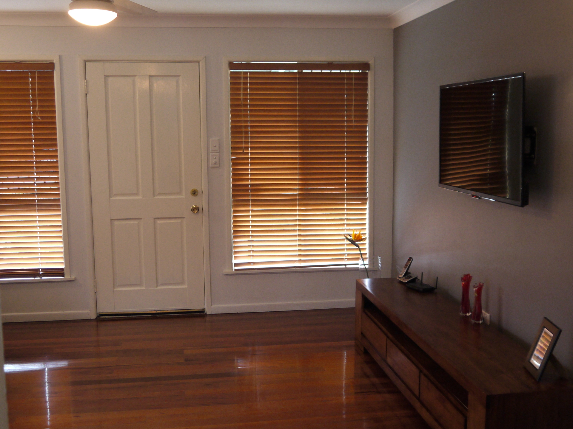 3 spacious bedrooms all with built in wardrobes and ceiling fans with polished timber flooring throughout make this a must see home.