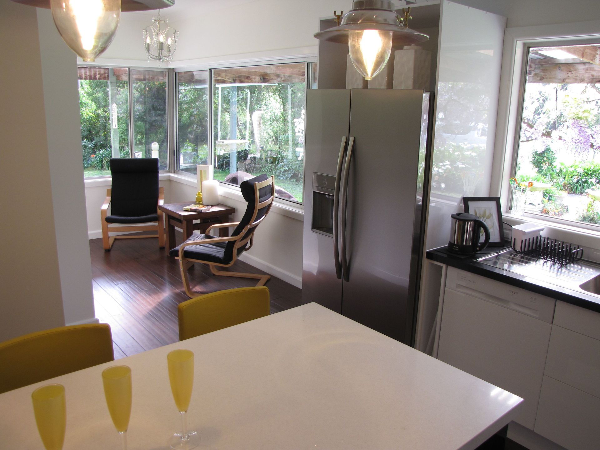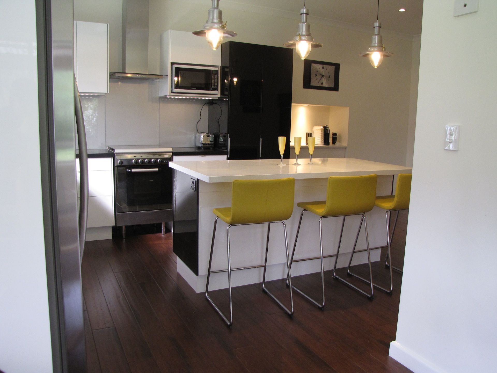 Newly renovated gourmet kitchen with stone bench tops and glossy cupboards plus new dishwasher, gas stove and cooktop and new bamboo flooring, this kitchen is a cooks delight.