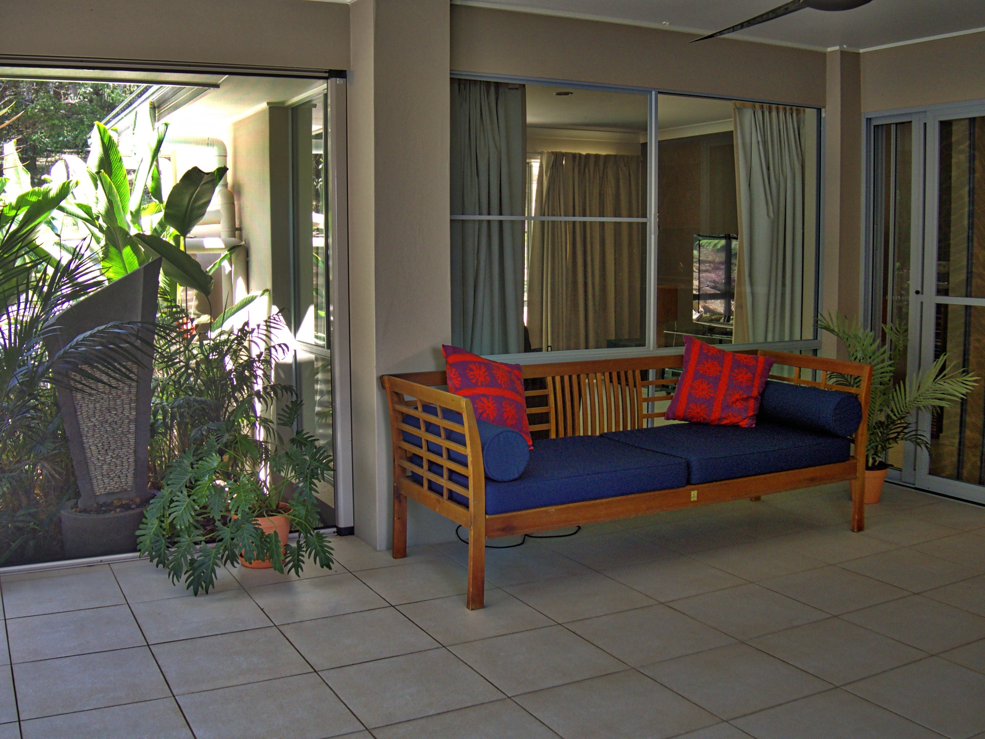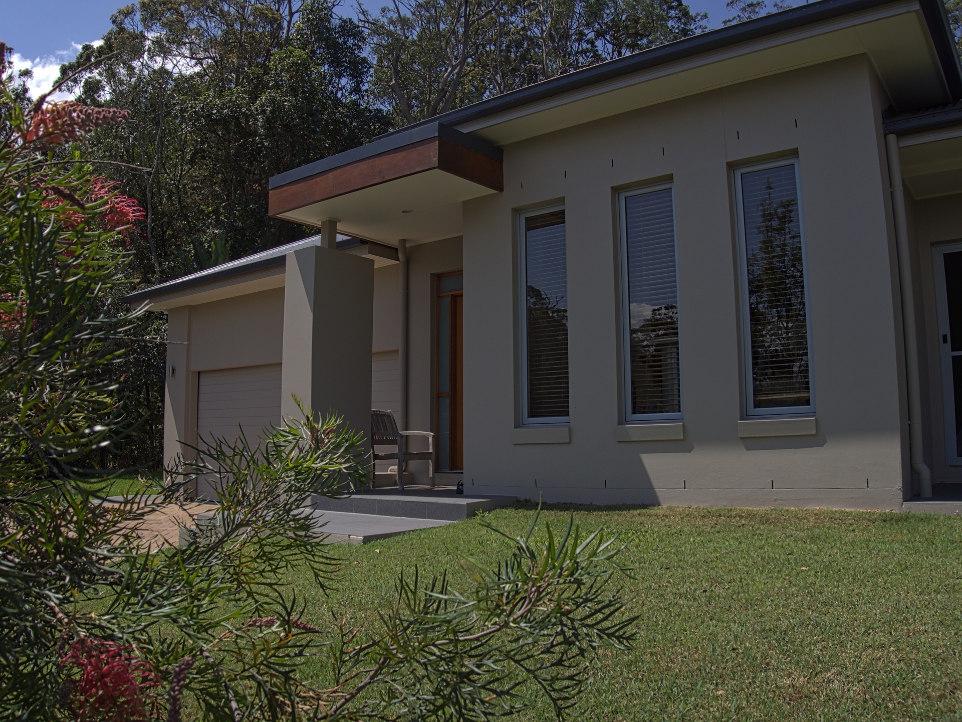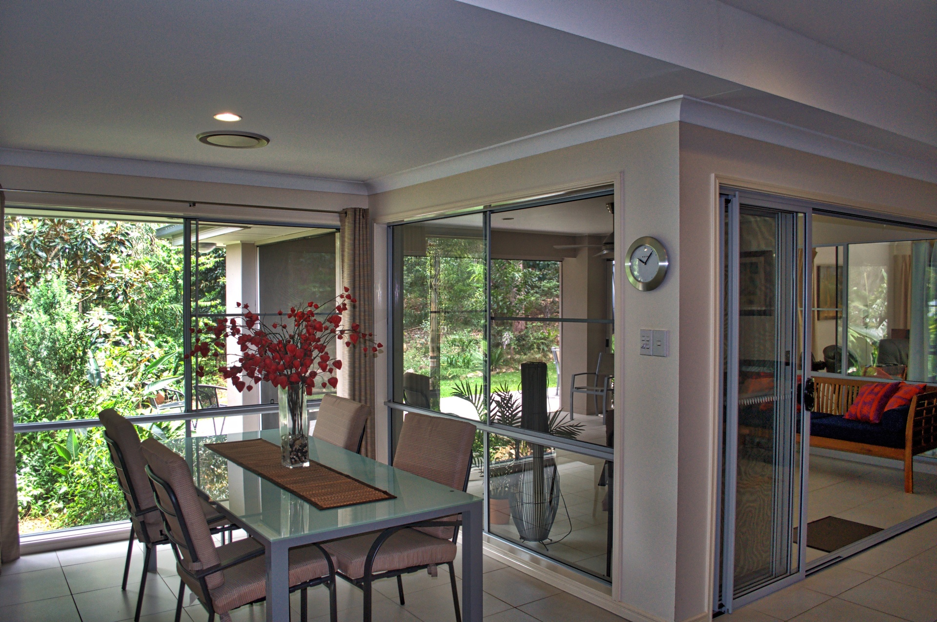 To the left is an enclosed tiled alfresco area which takes full advantage of the forest views and dry creek-bed landscaping.