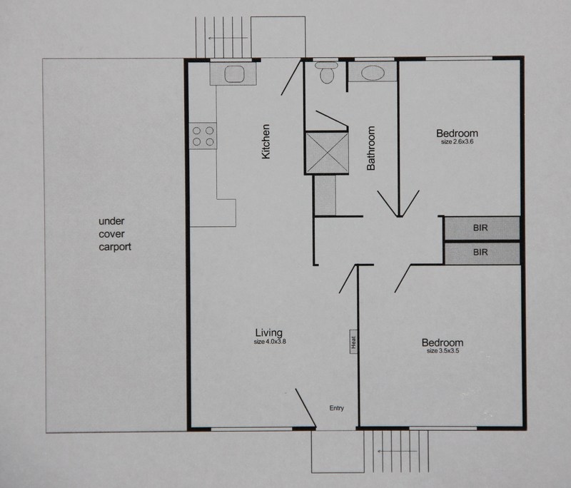 Comprising a bright open design living area with gas heater and brick feature wall, adjoining kitchen with gas cooking and ample cupboard space. Bathroom with laundry section, shower and separate toilet. Two generous sized bedrooms with floor-to-ceiling BIRs.