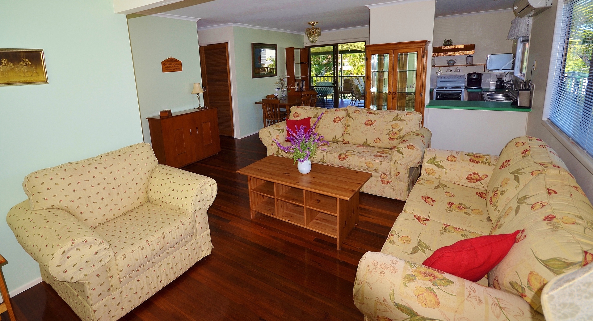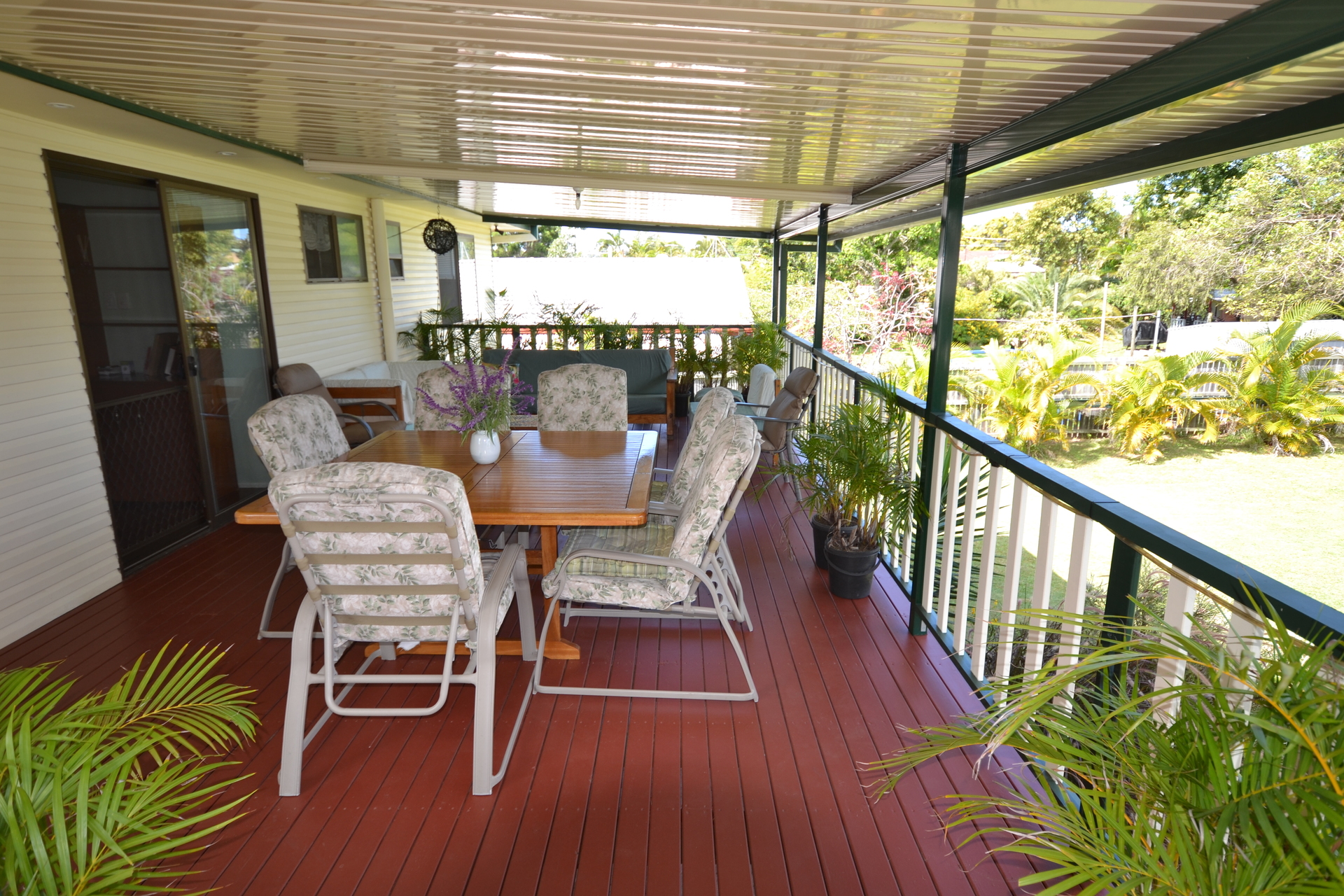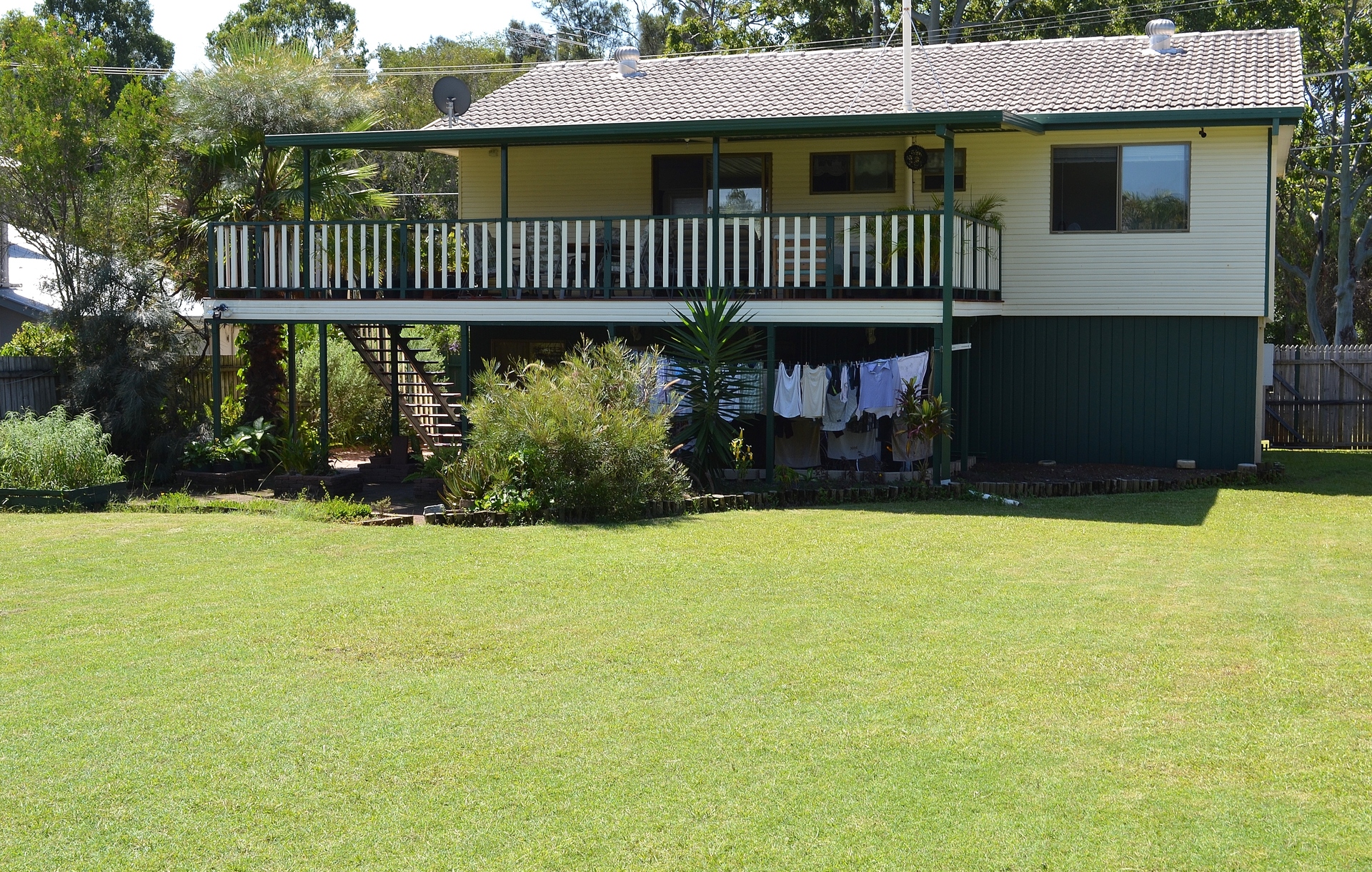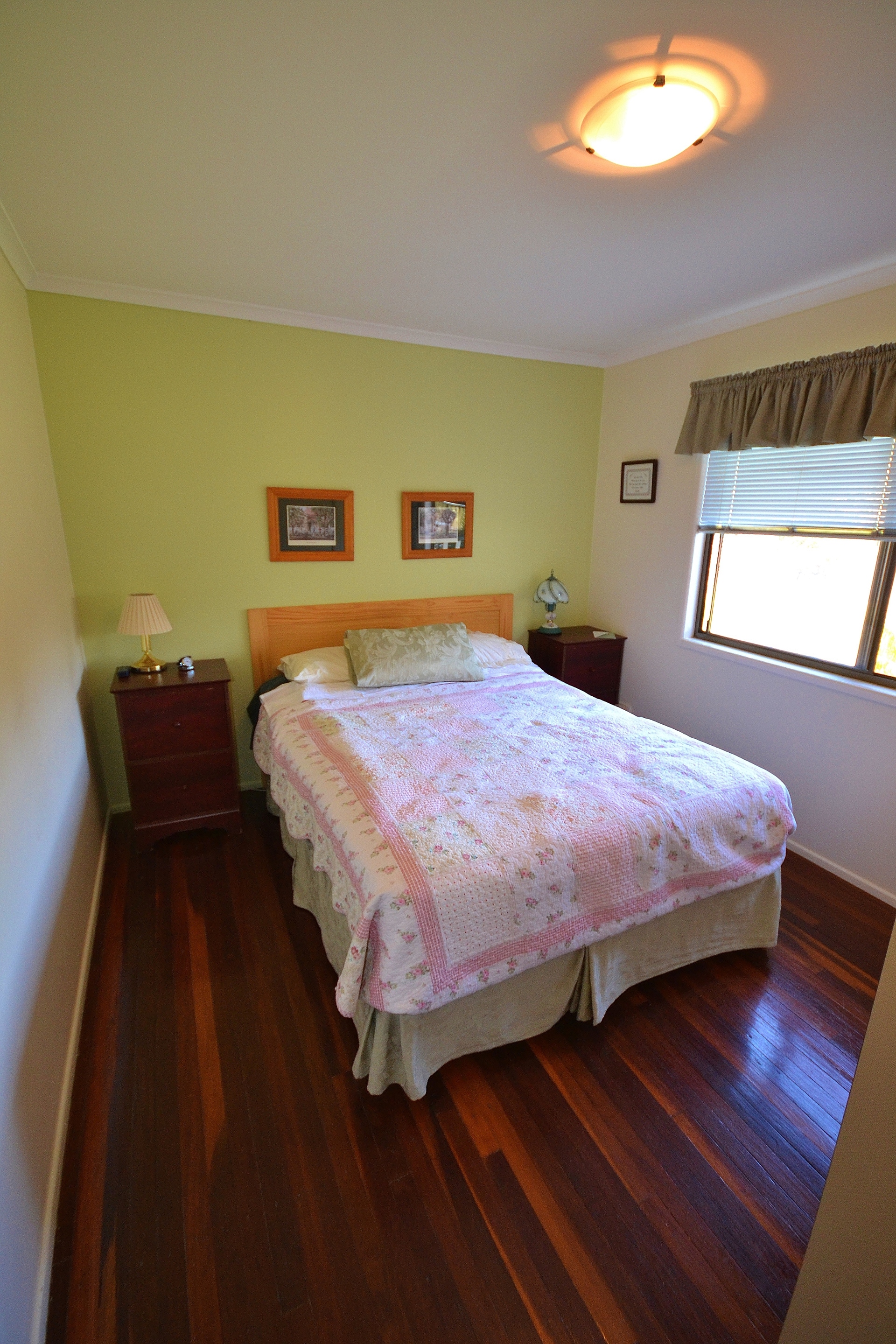 Downstairs, there is a generous tiled space with a shower and toilet. There is a single car garage and an extensive paved, shaded outdoor area. There are two split system air conditioners (one upstairs, one downstairs), which make this house comfortable all year round.