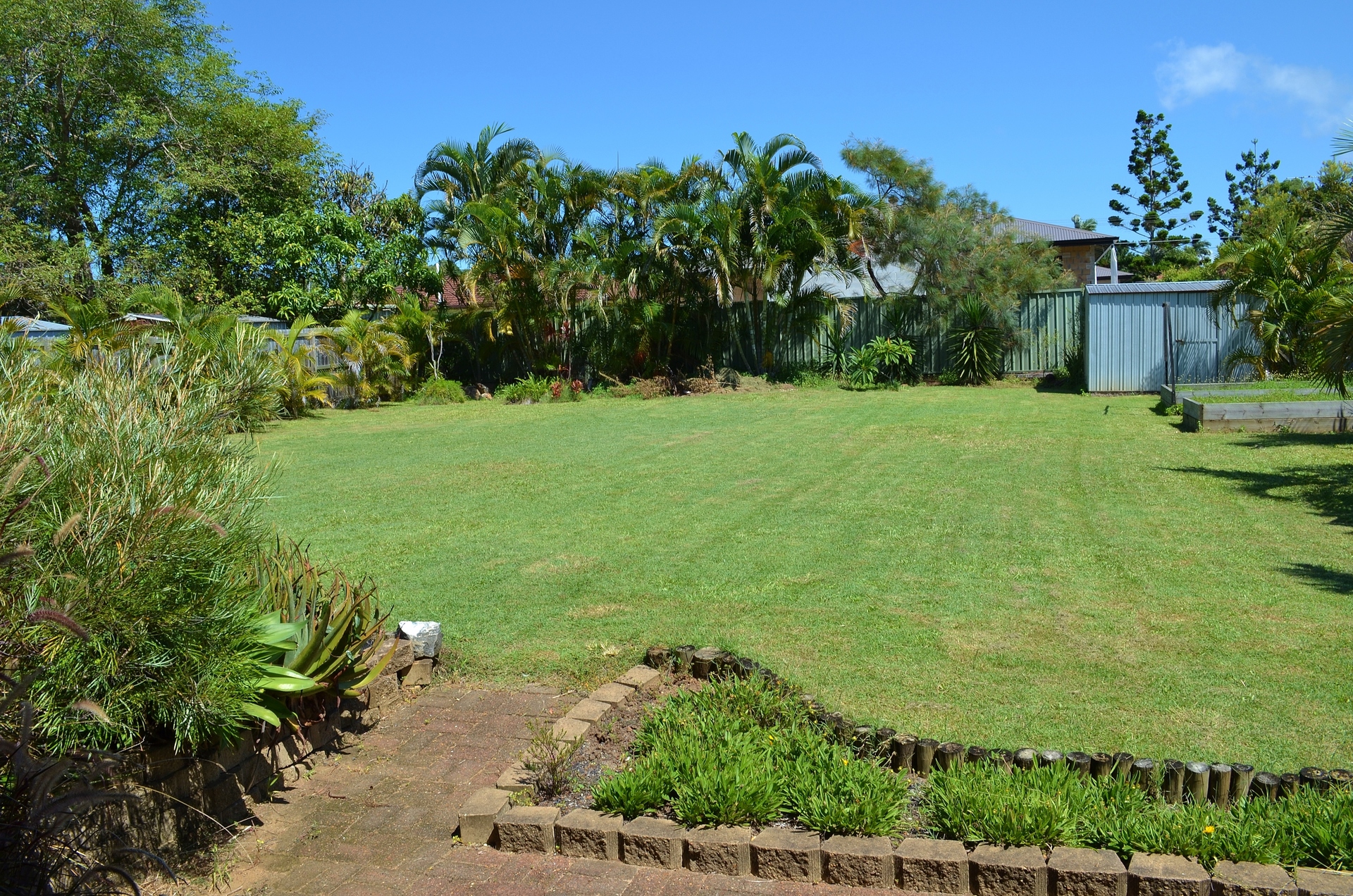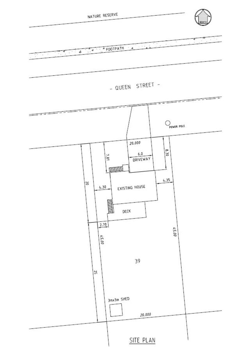 The house is situated on a fully fenced 900 sq.m. allotment (20m frontage with 45m sides). The contour is such that there is a slight down grade from back to front. There are no encumbrances or easements. The property has a small shed at the back and two raised veggie gardens.