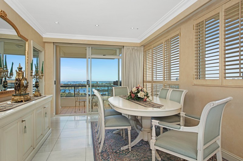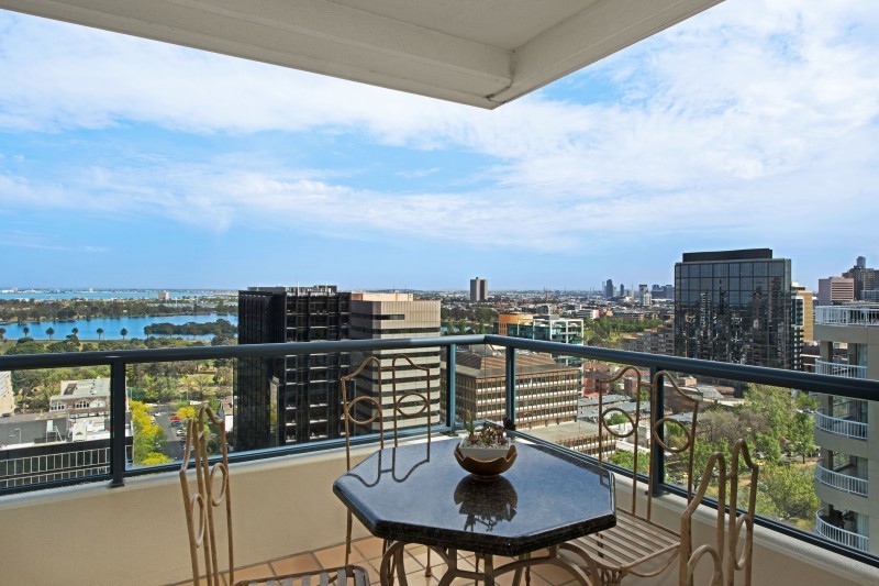 This 19th floor apartment with stunning views over Fawkner Park, Port Phillip Bay and Albert Park Lake.