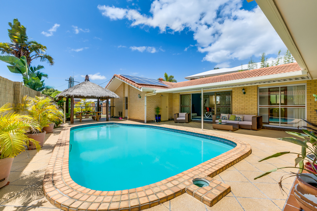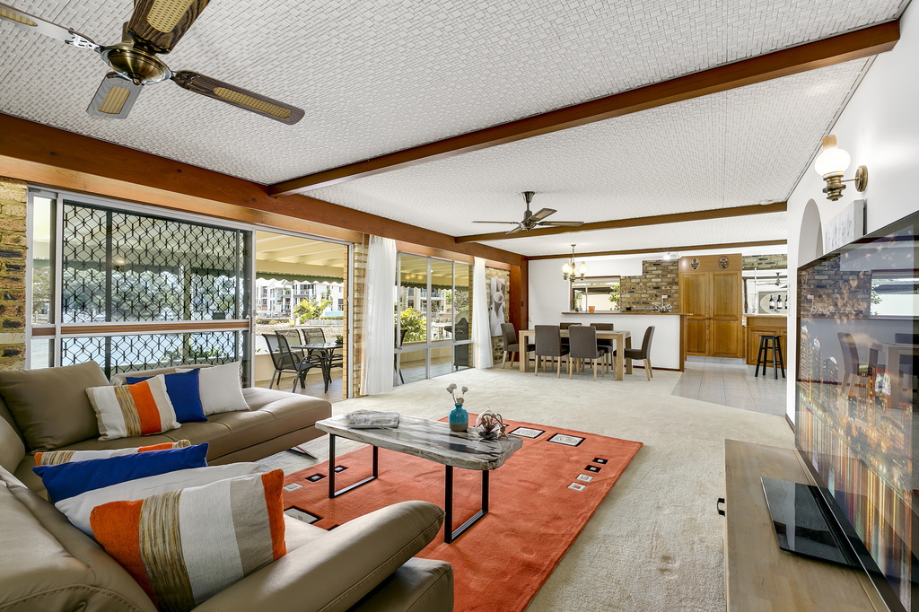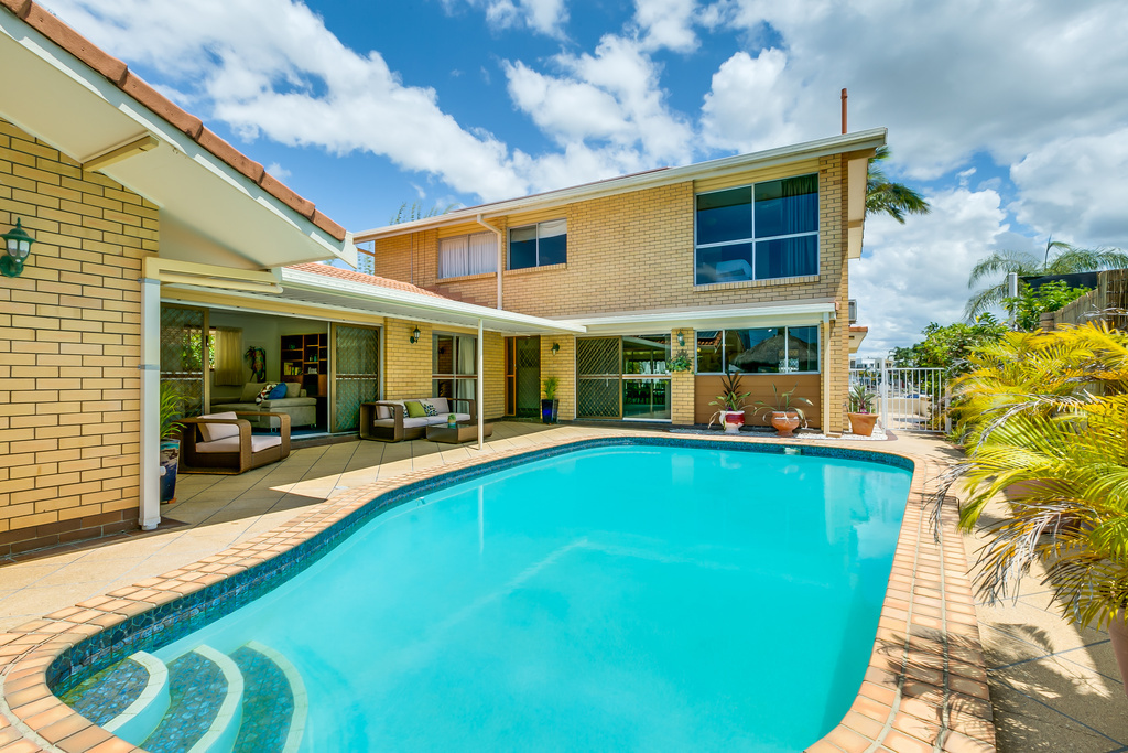 Situated in one of Isle of capri's most prestigious locations. Central to schools and shopping, with a wide waterfront outlook and sandy beach, this home is ready to update to your own style or just move in and have an early dip in your pool.