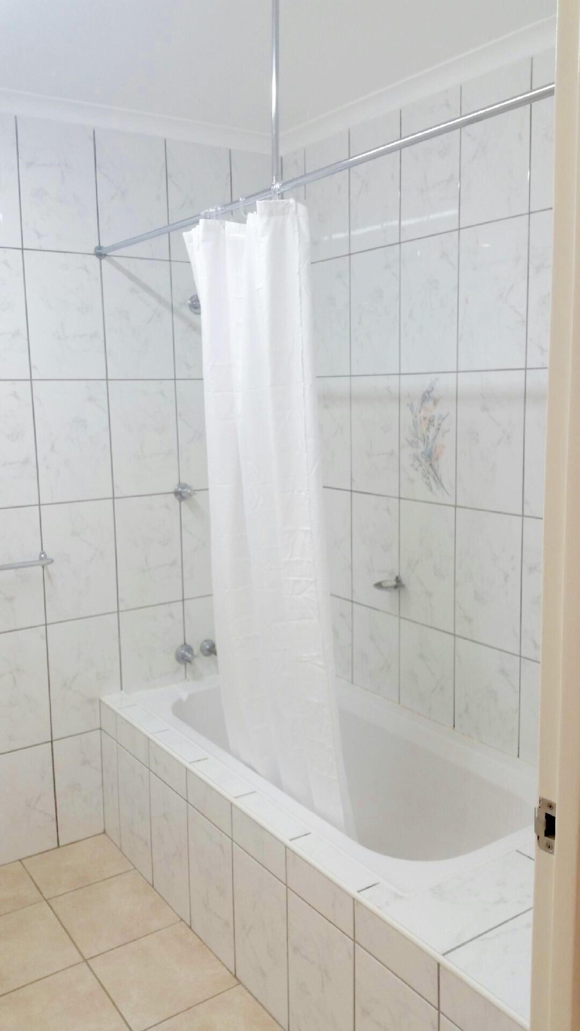 The spacious bathroom features floor to ceiling tiles, shower and bath and new LED lighting.