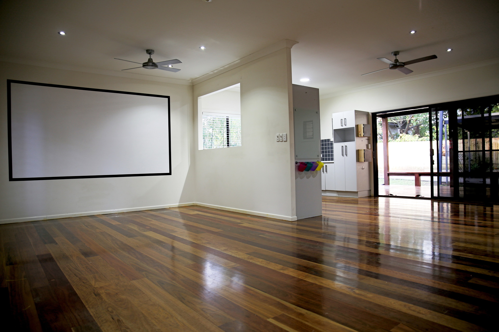 2 separate huge living areas, one with home cinema screen and mount for projector.
