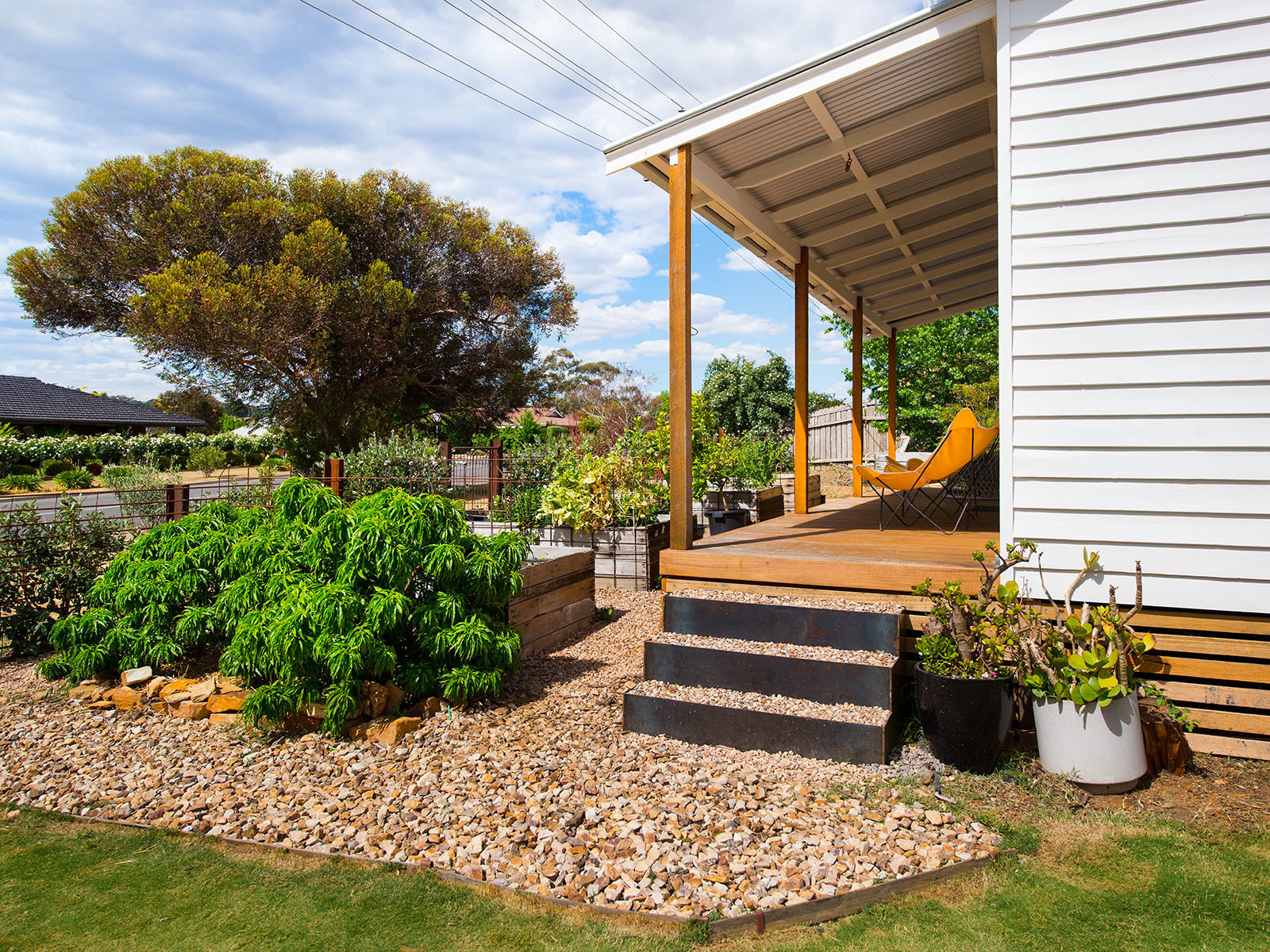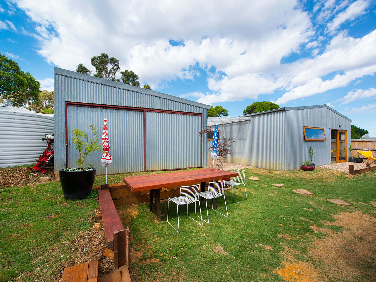 The low maintenance yard boasts a fully automated, irrigated veggie boxes in the north, numerous fruit trees and an easy mow level lawn. There are two 11,000L rain tanks so you will never run out of water and there's still plenty of room to add a chook pen or your own additional garden designs if desired.