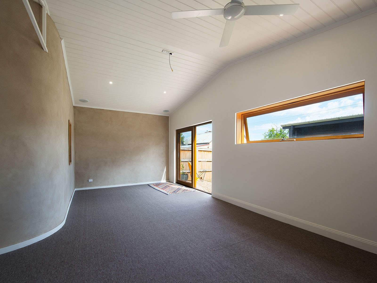 The very comfortable fully self-contained studio/apartment comprises of a heavily insulated/solar passive design and implements several natural building techniques, including cob and earthen plasters. All windows and doors are double glazed and walls have been sound proofed making it suitable for a music or art studio, home office, yoga studio or separate rental. It is fitted with ceiling mounted speakers and cabling to support a video projector for a surround cinema if desired.