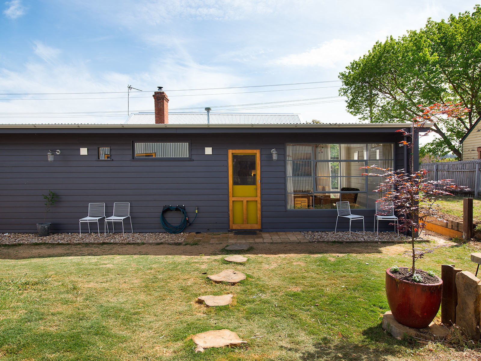 A separate hardwood framed shed on a concrete slab provides a perfect workshop space and is connected to 3-phase power to run kilns or large machinery. All of this on a level north-facing block a short walk from the center of town and schools.