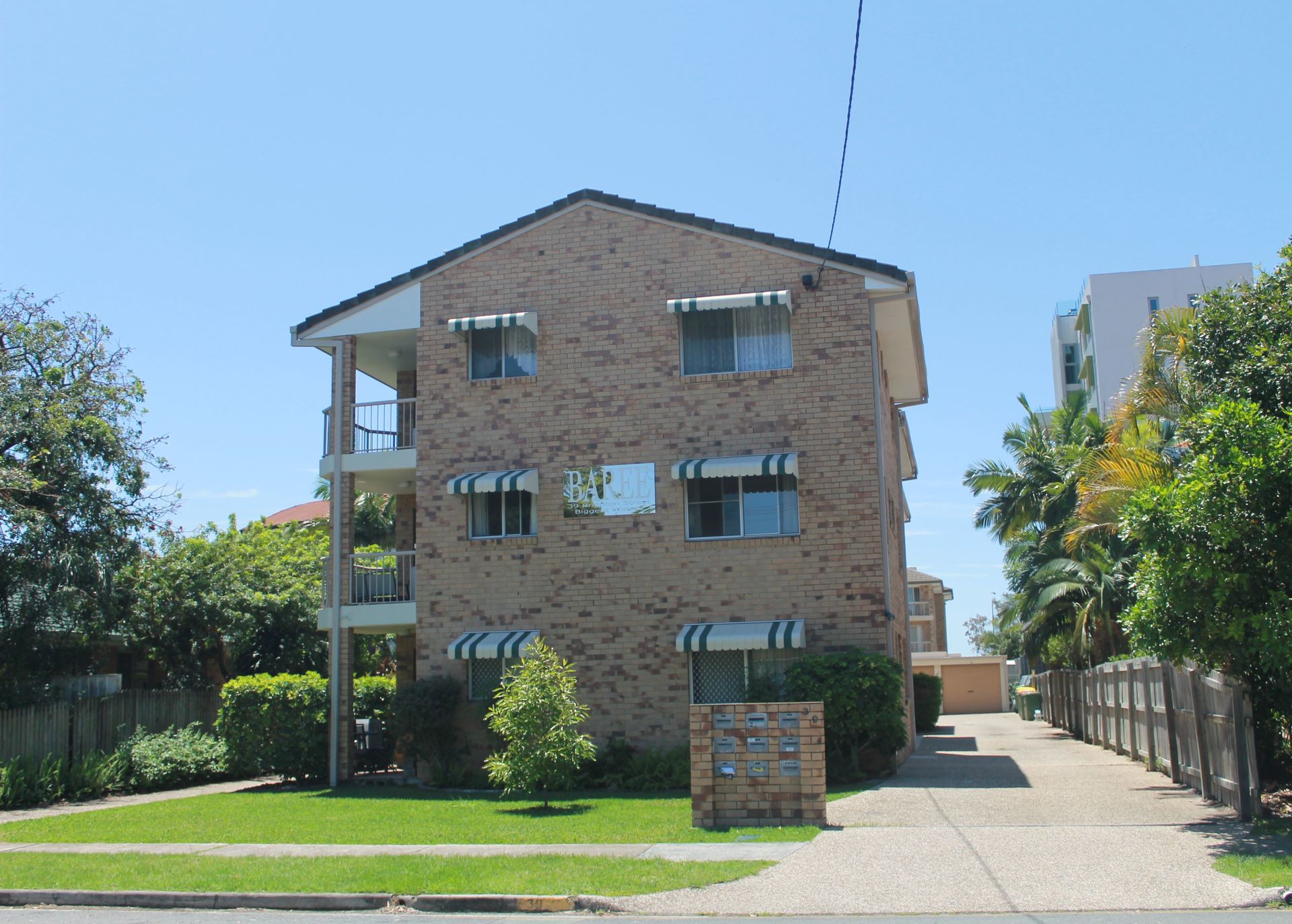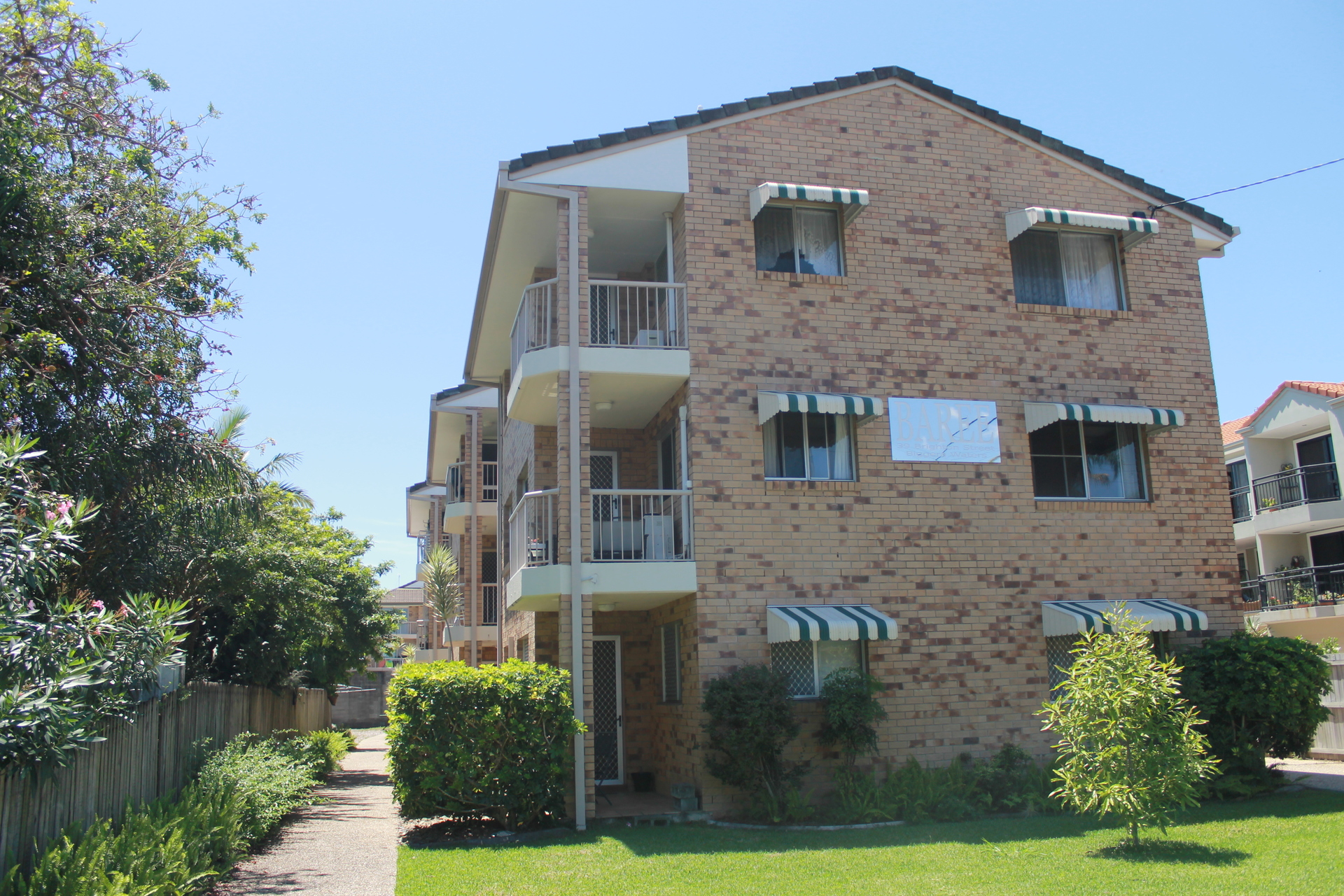 Top floor front air-conditioned 2 bedroom unit with built ins, one bathroom, single lockup garage located just one street back from the broadwater, Open plan lounge and dining area, balcony with broad water glimpses - ( see actual photo ) bathroom and separate toilet, unit has new carpet and new hot water system.