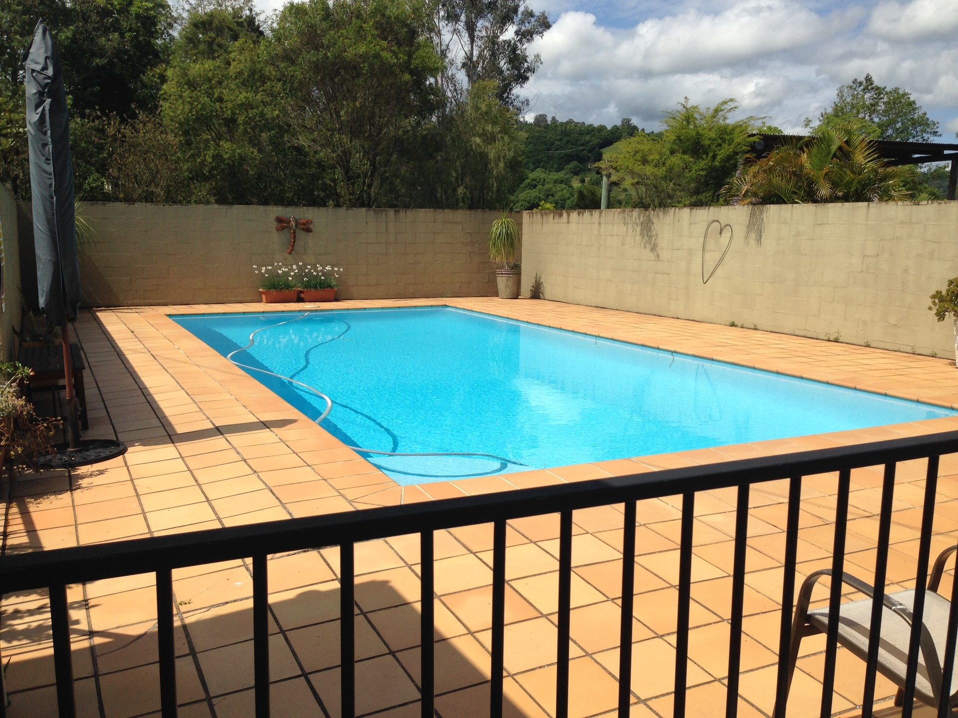Permanent water from easement to Terania Creek across the road, pump at creek turned on by a flick of a switch at the house.