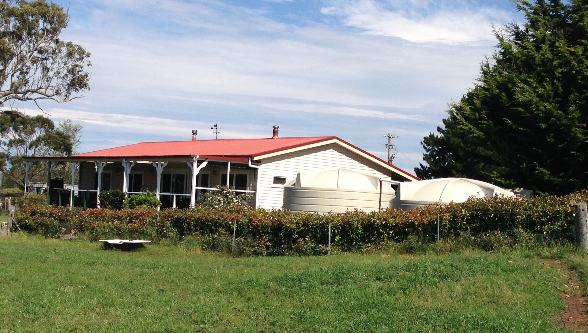 Creek flows into water tank and pumped for stock & garden use. (never run dry)