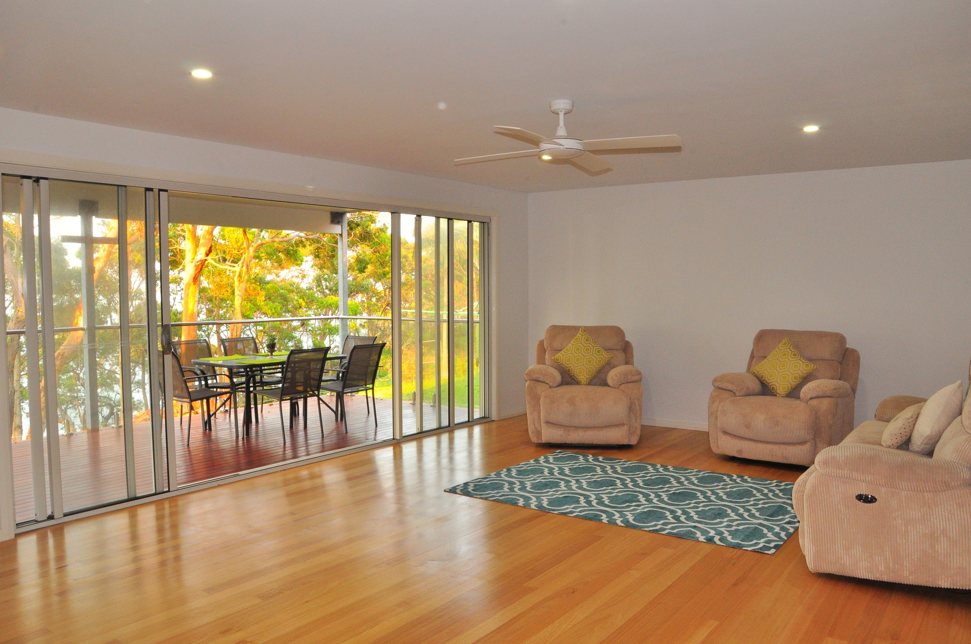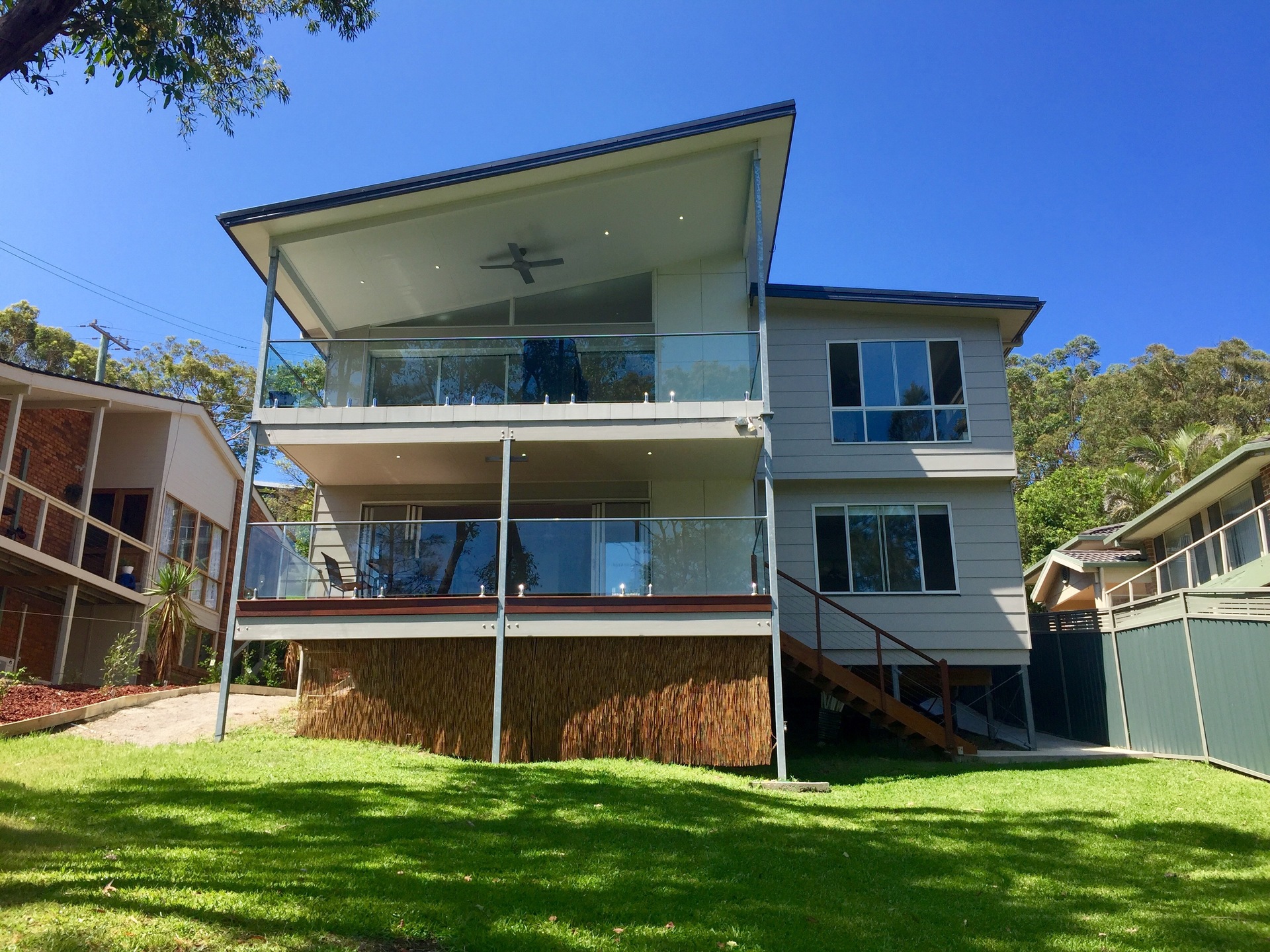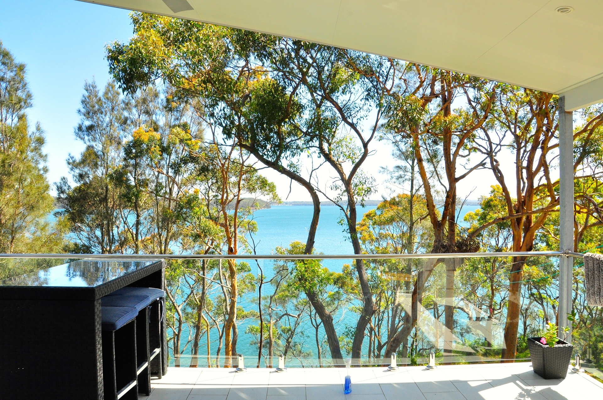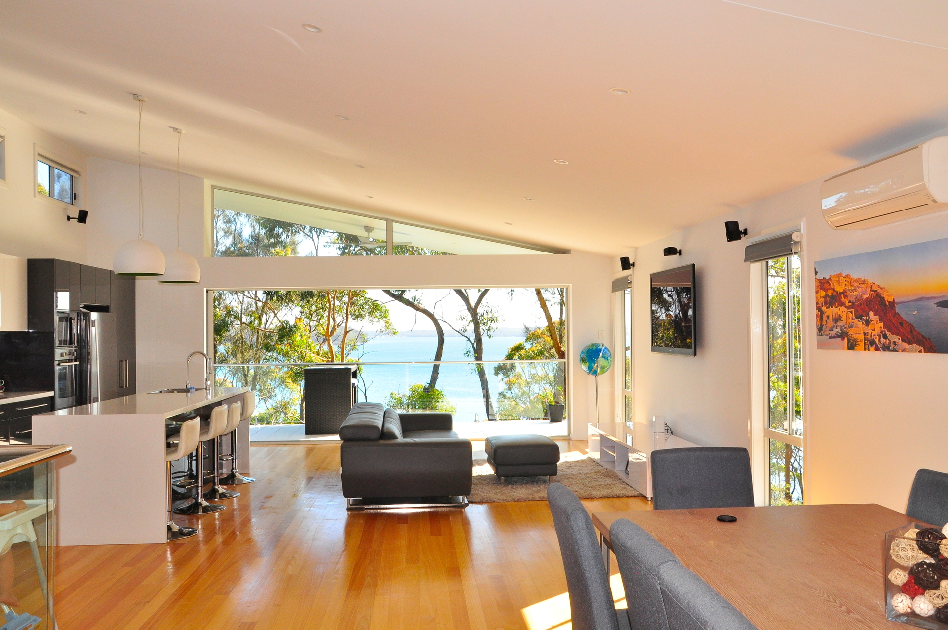 New Home built in 2013, Large open plan living leading out to a large entertainers deck surrounded by trees and wildlife overlooking Lake Macquarie with stunning water views.