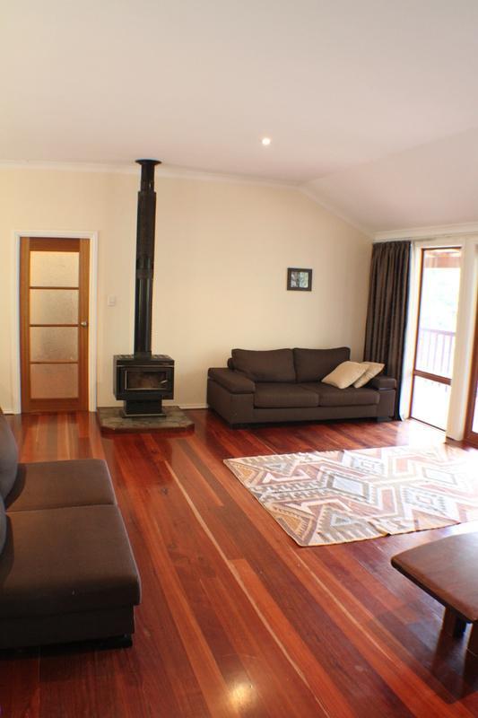Through the winter months, the lounge room wood-fire becomes the heart of the home, and assists greatly in preserving a warm and cosy feel. The house is elevated for better lake and forest views and provides a large amount of storage space underneath. The wide yard, in front of the house, allows the pleasant waterside ambience to be fully appreciated.