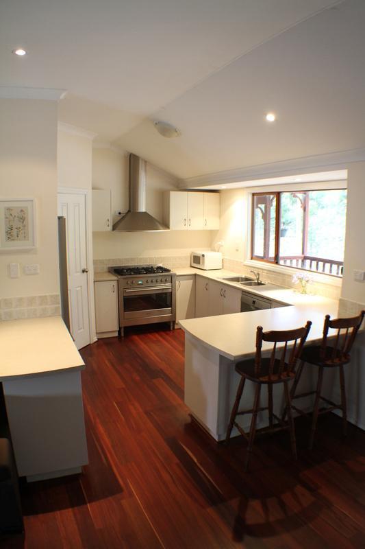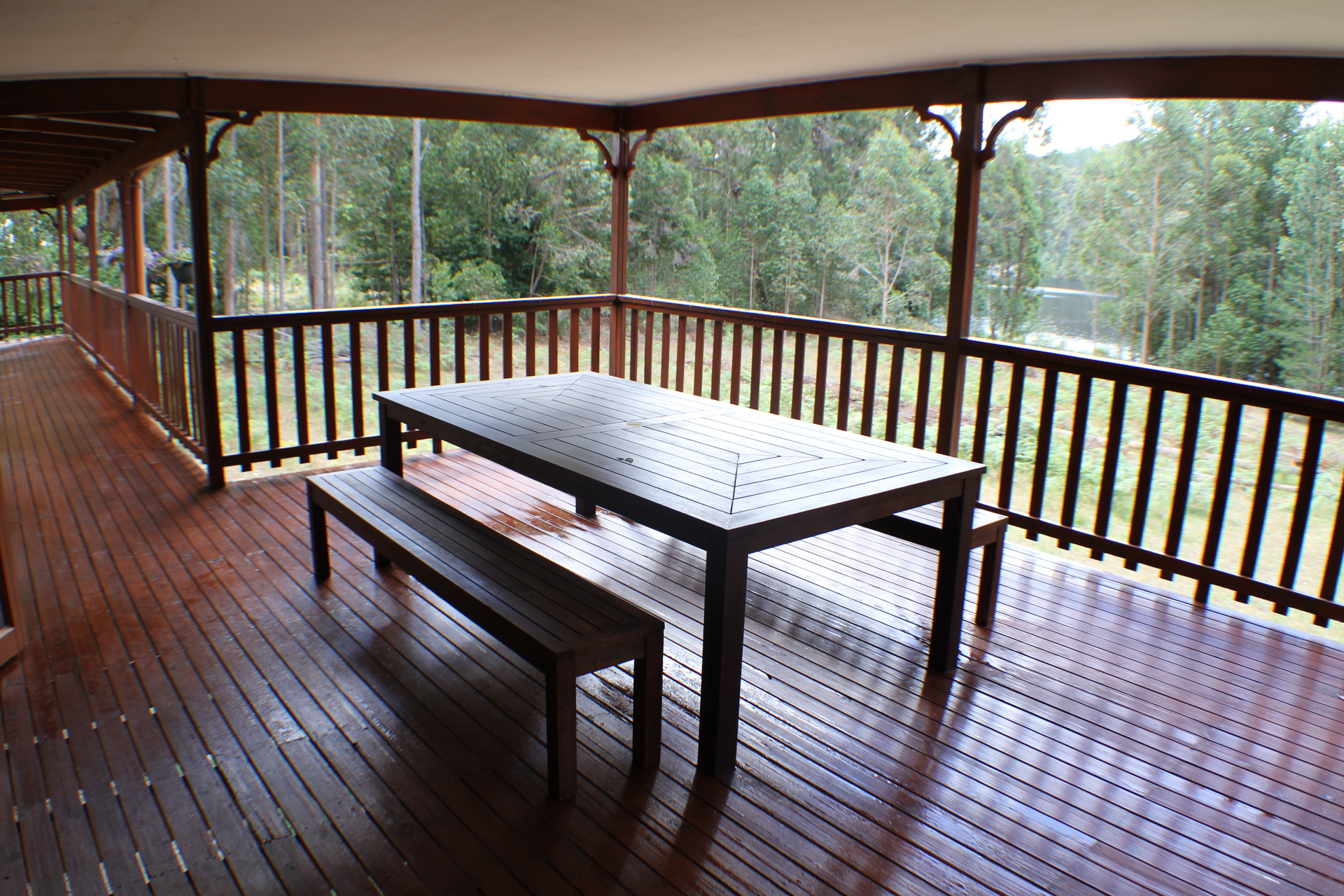 The spacious house, still very new, features polished jarrah floorboards throughout, a wrap-around verandah, large deck/ al fresco area, and quality interior fittings. The large extent of glass gives the interior a light, airy and fresh feel, and allows the encircling natural beauty to be viewed with ease.