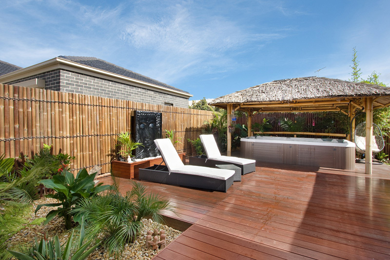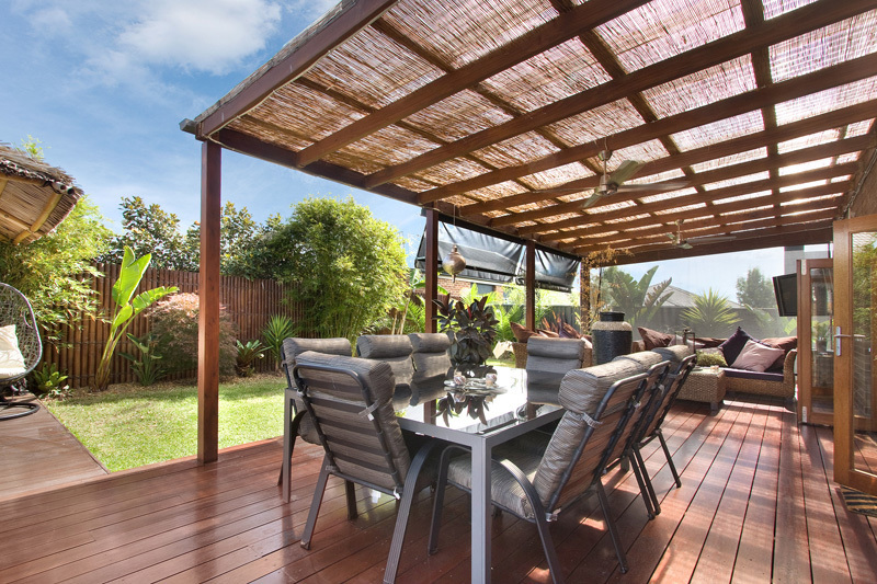 Which is central to the design that opens to a private tranquil outdoor resort style living/entertainment area with beautiful landscaping throughout, merbau decking and under cover area with e-screen blinds,and tv point for your pleasure ,