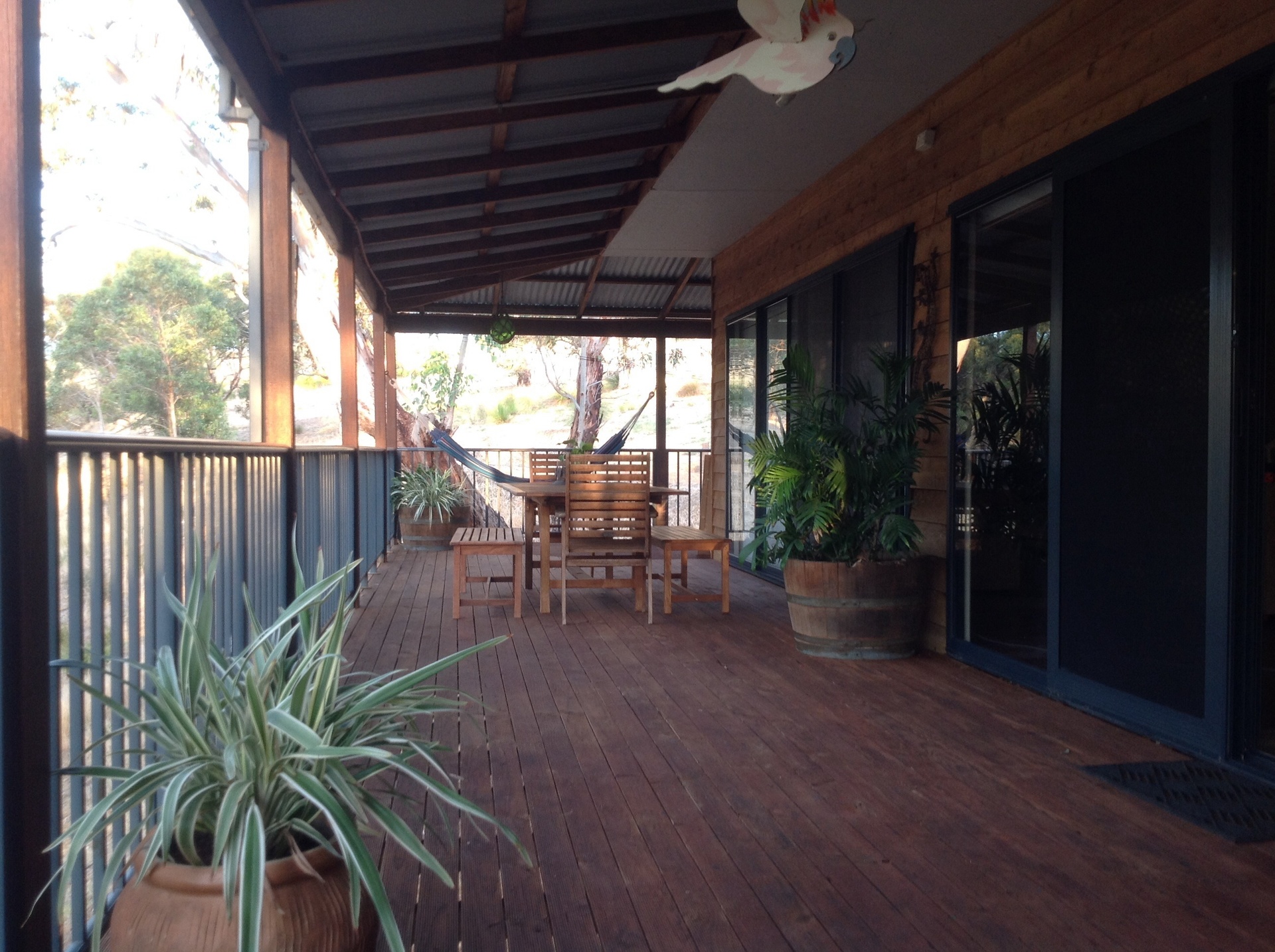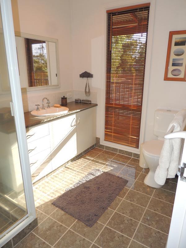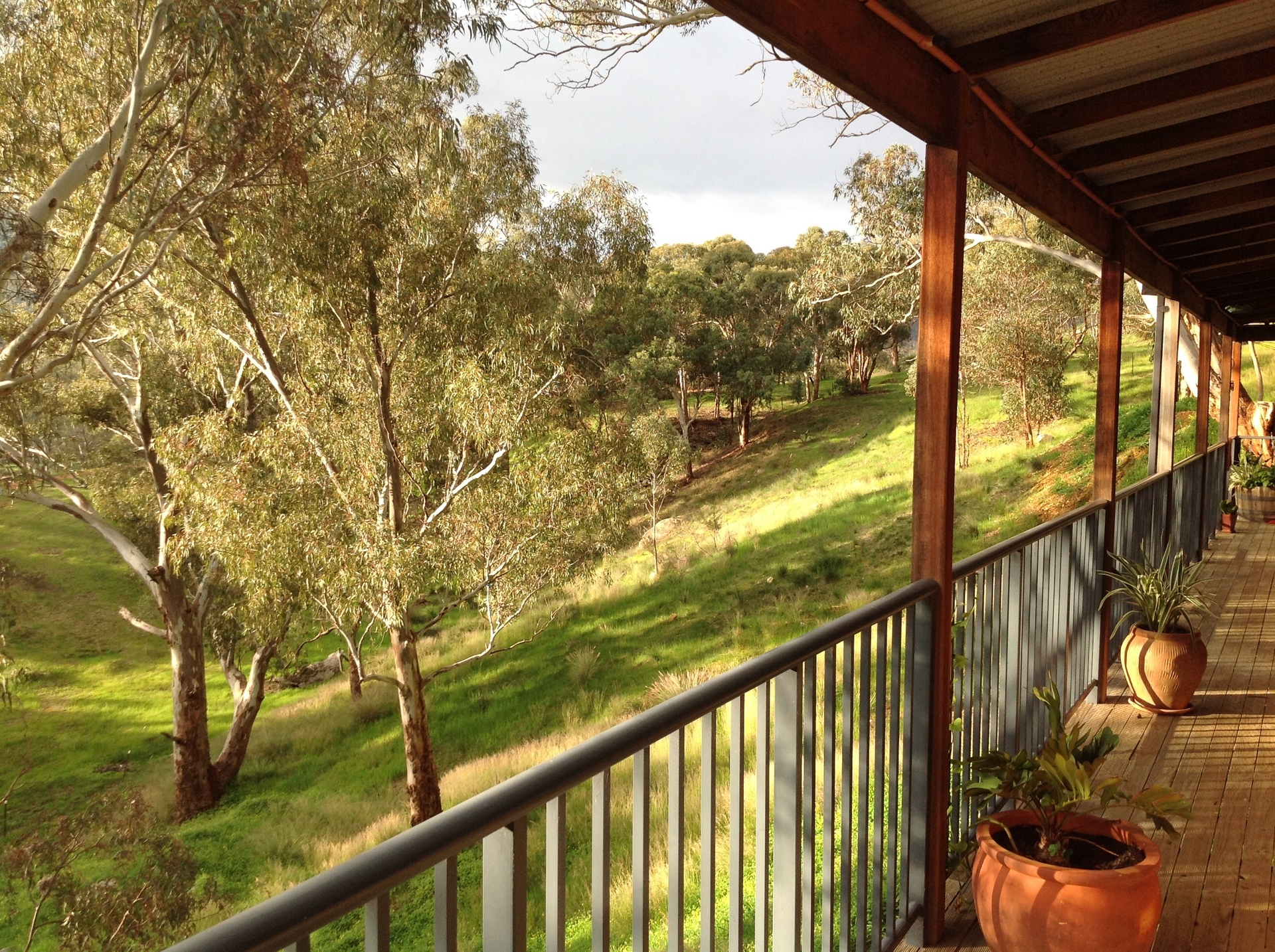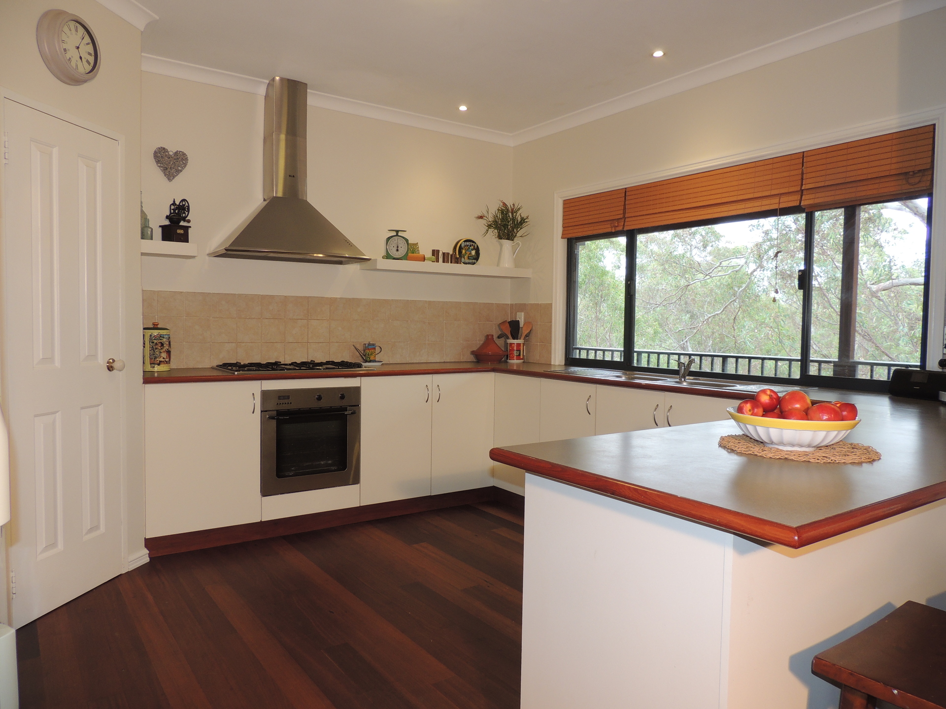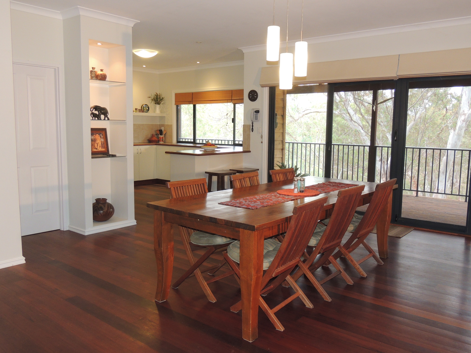 The home has 3 good sized bedrooms with BIR's and 2 bathrooms, with a 4th room also with BIR currently used as a study. A large, light-filled open plan living and dining area opens out onto the wrap-around verandah, with two huge sliding door windows capturing the views through the trees to the paddocks below. Recycled solid timber floorboards feature throughout the main living areas, with carpet to the bedrooms.