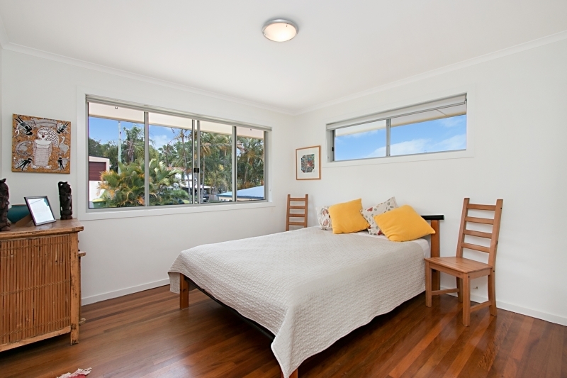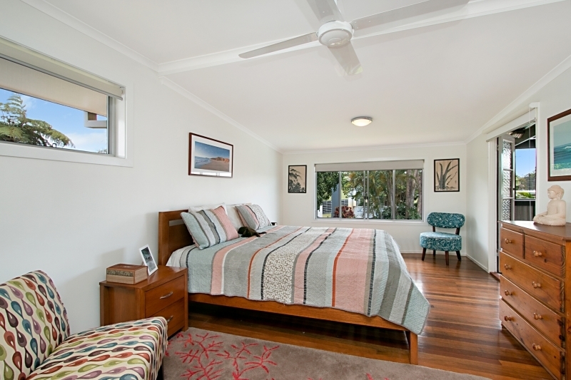 The oversized master bedroom has French doors opening on to a large upstairs entertaining area. This light filled home captures the sea breezes.