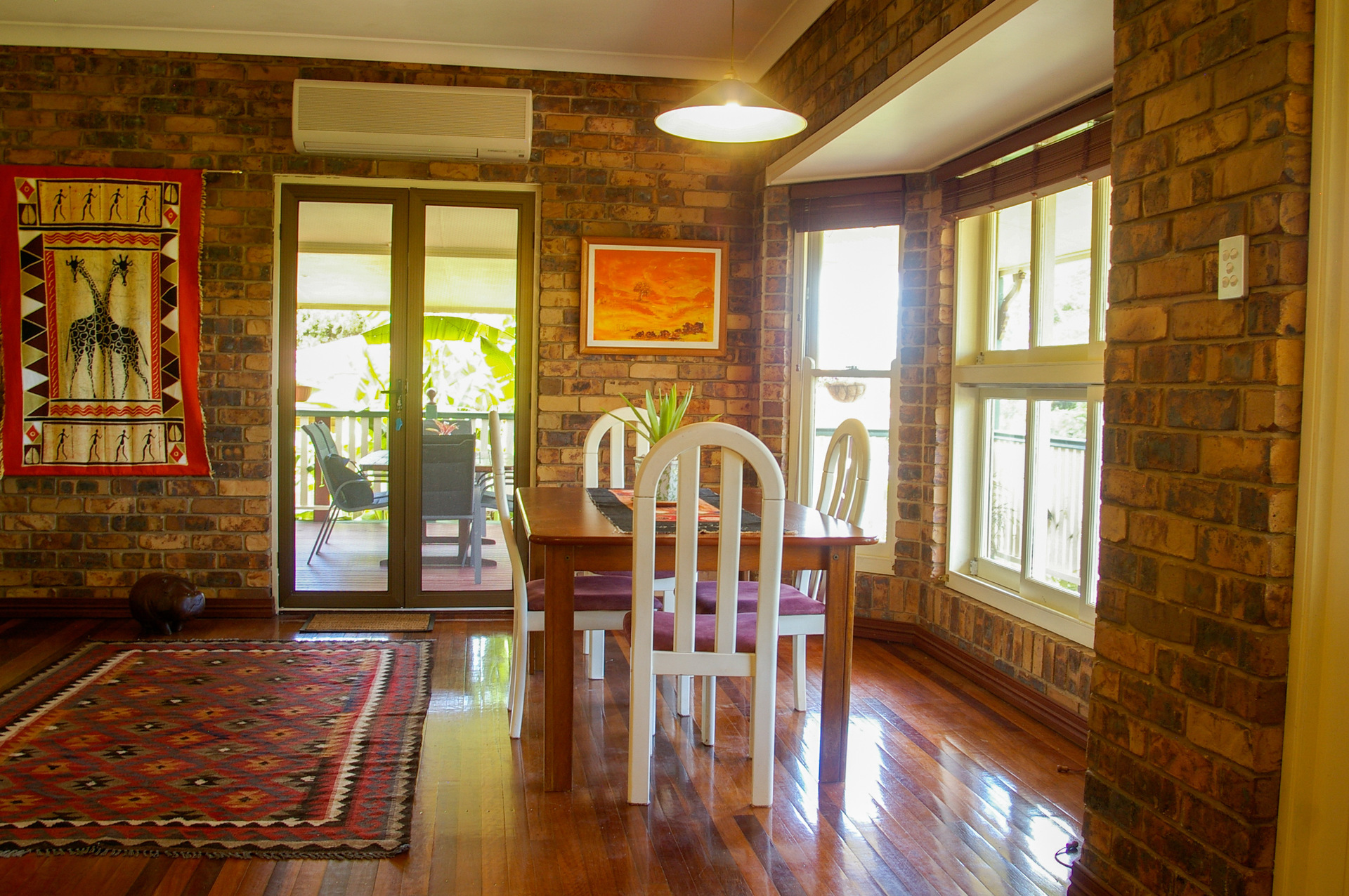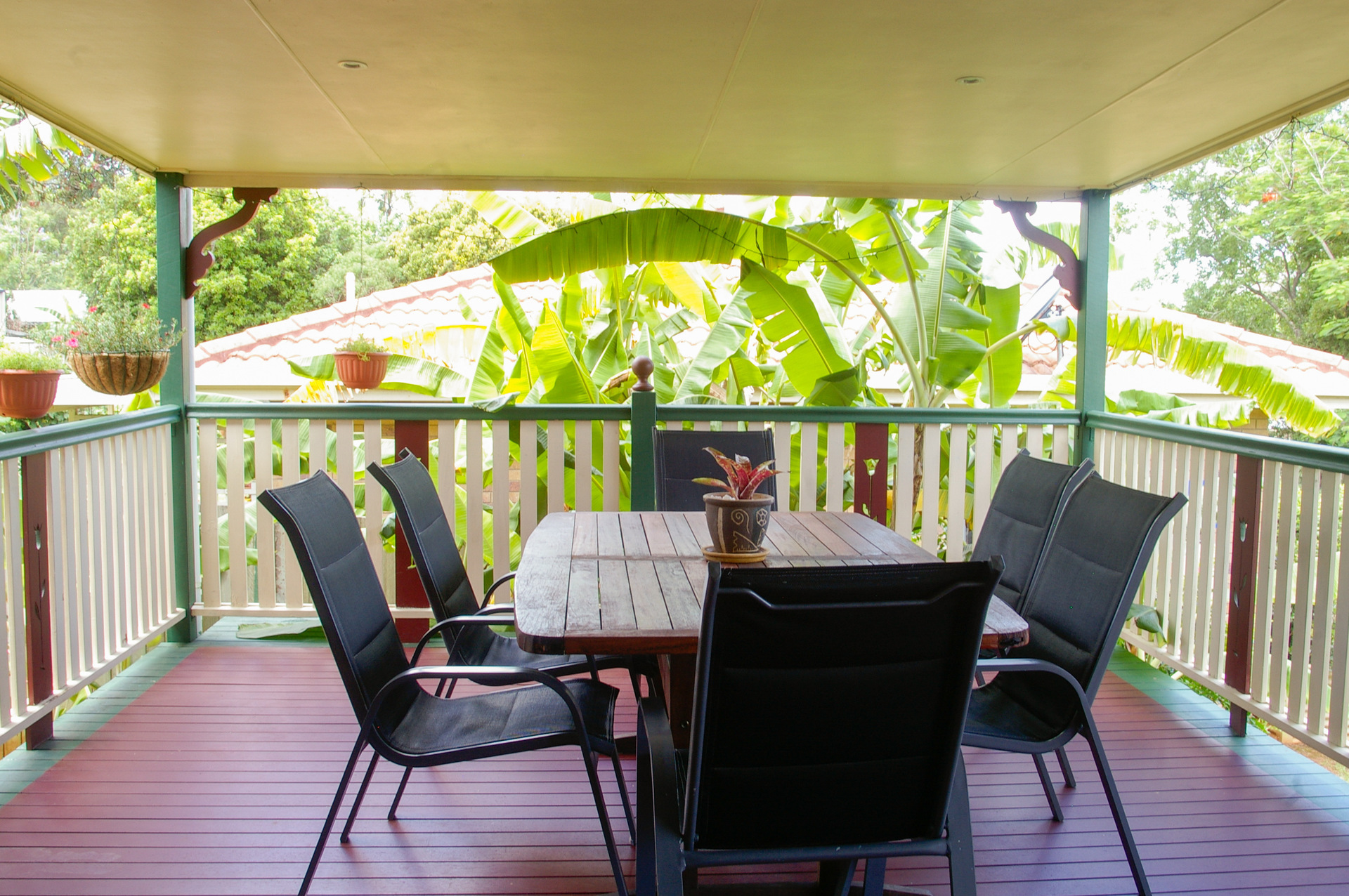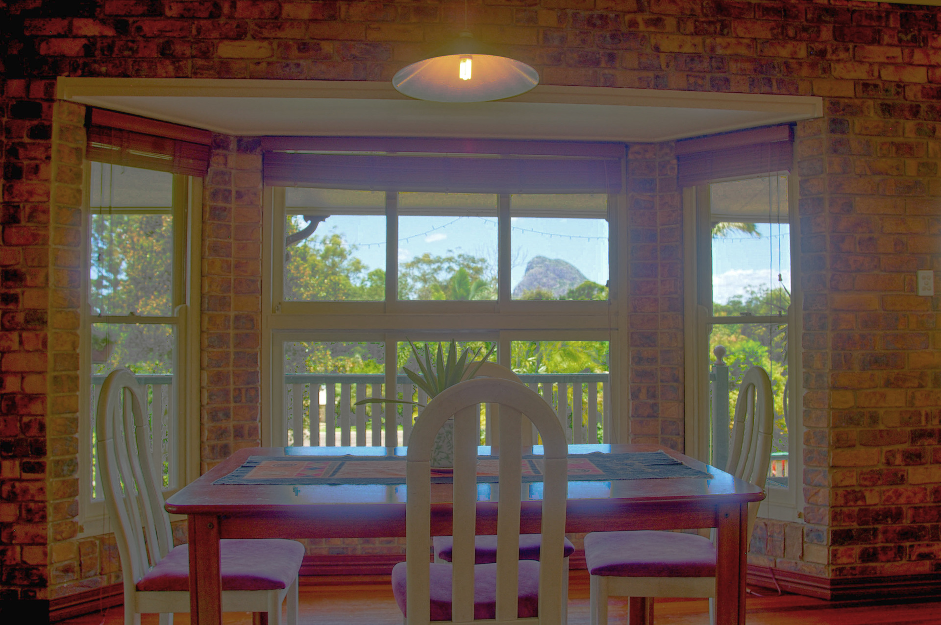 Our beautiful, high set, imposing, modern Queenslander is situated in the Sunshine Coast hinterland at Glasshouse Mountains and offers spectacular views of the mountains.