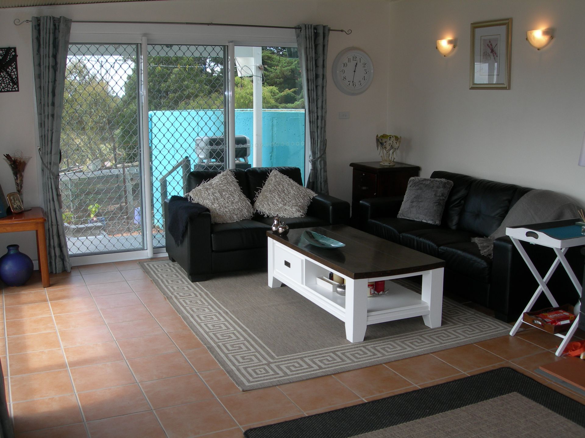 -Ceiling fans in bedroom & dining area.-Sunny North facing living room with new double glazed, double stacker tinted glass sliding doors, leading to spacious deck with extensive northerly long distance views.