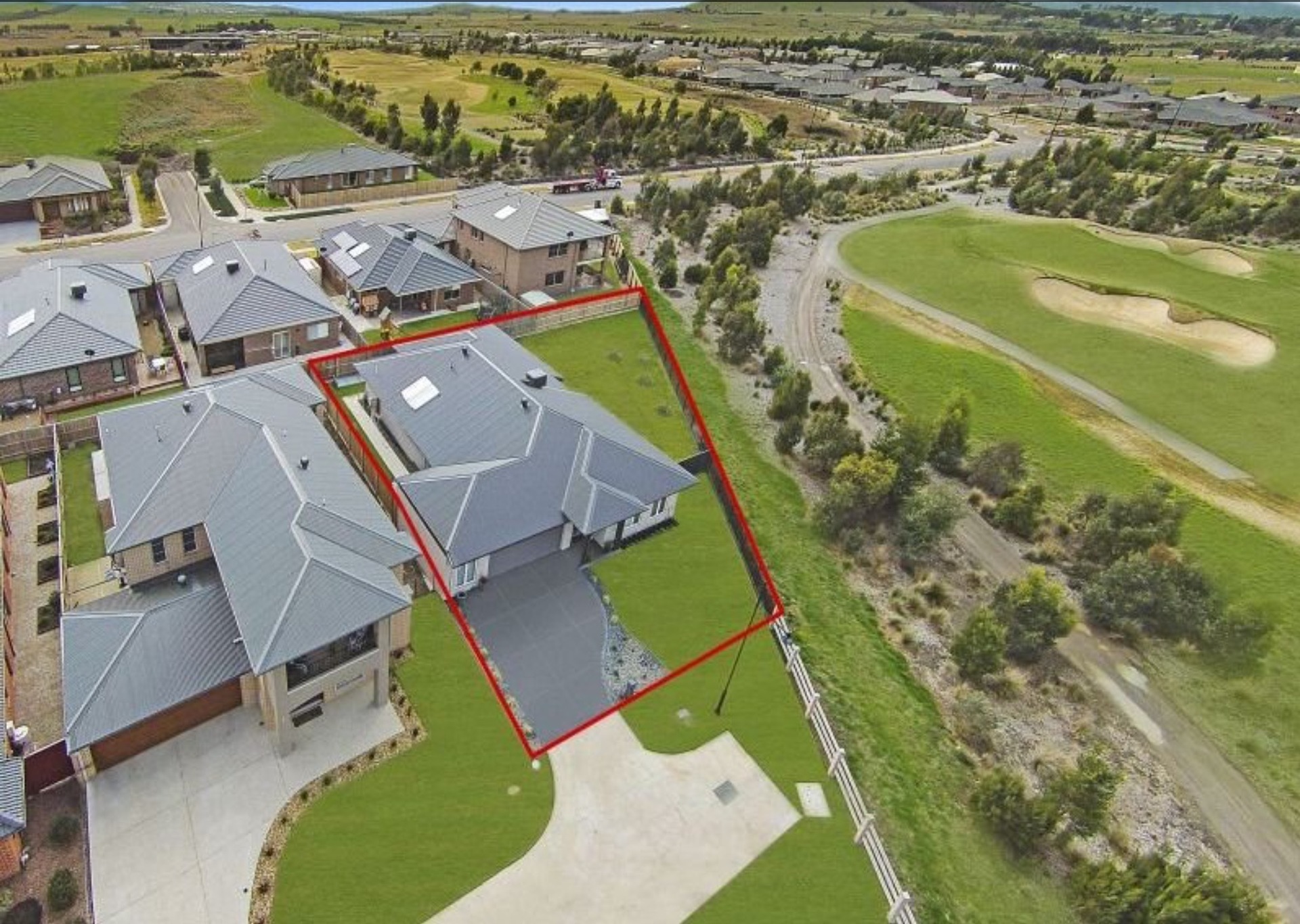 The living comprises a theatre/lounge, study/sitting room towards the front of the home and spacious open plan kitchen/dining/living, all look out over the over the huge yard and beyond to the golf course.