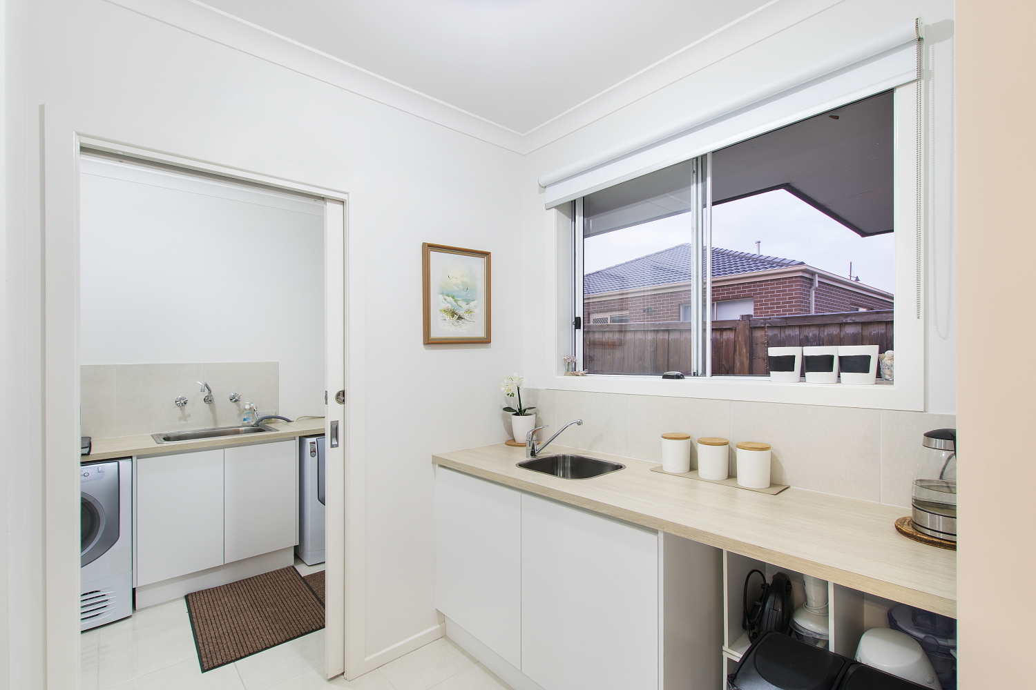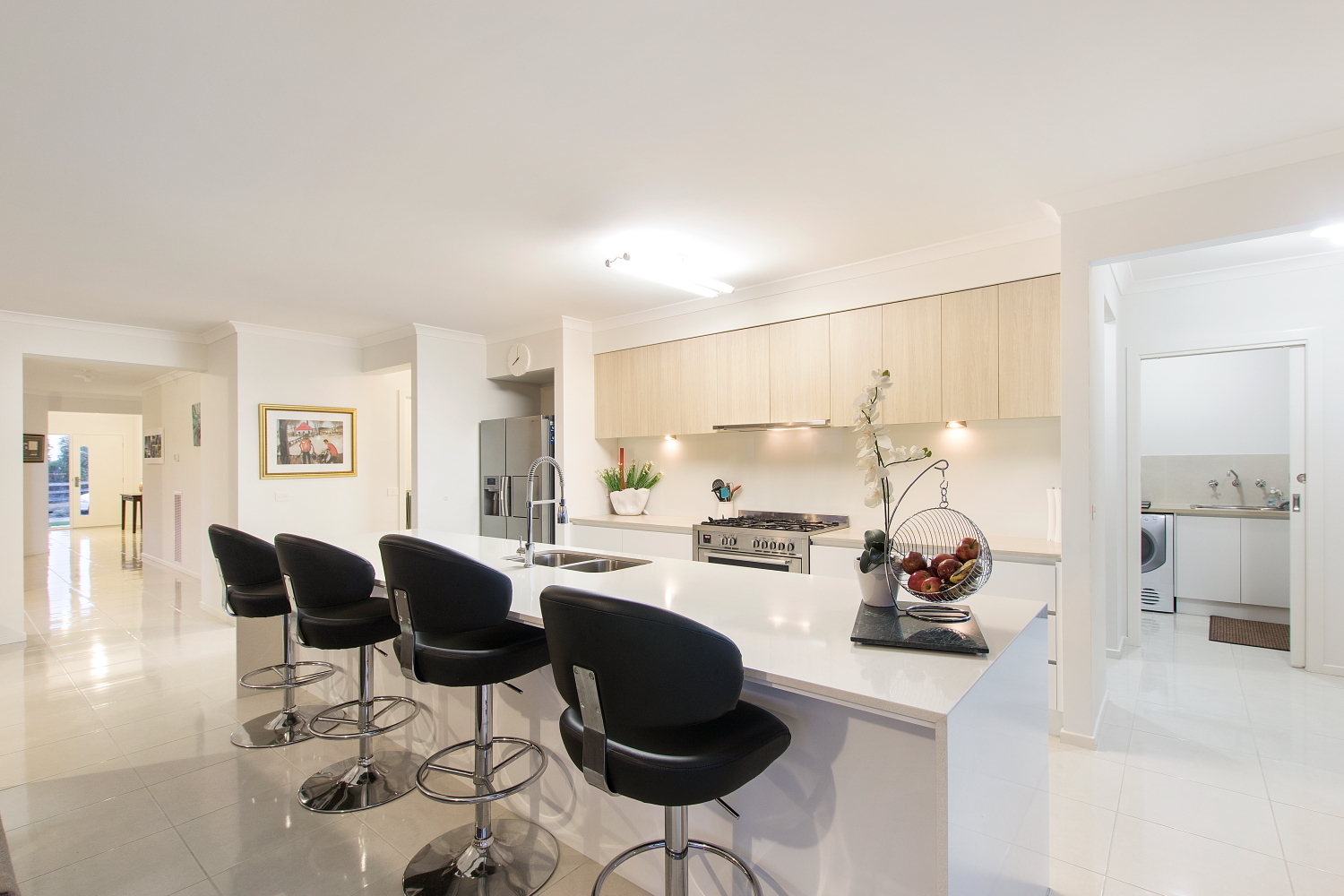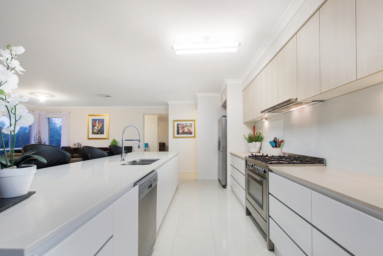 The kitchen boasts Caesar stone bench top, Blanco stainless steel appliances including a 900ml oven, dishwasher and massive galley and butlers pantry.