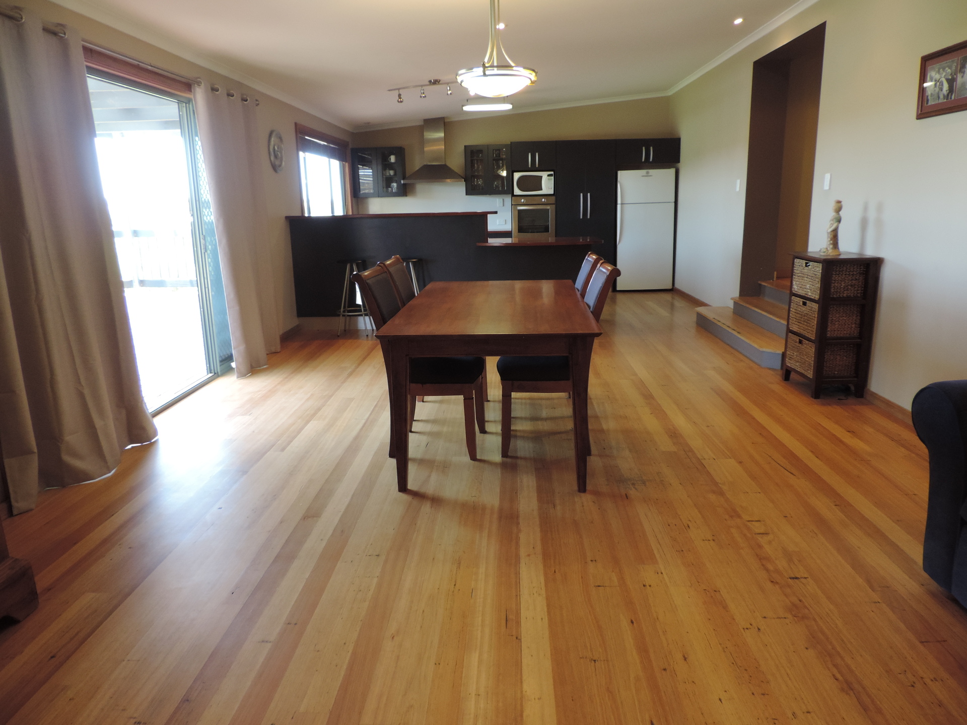 Polished timber floors and open plan kitchen with Jarrah bench tops and stainless steel appliances. Dining and lounge with reverse cycle air conditioning opens onto a semi enclosed north facing entertainment deck with picturesque rural views. Separate formal lounge with slow combustion heater.