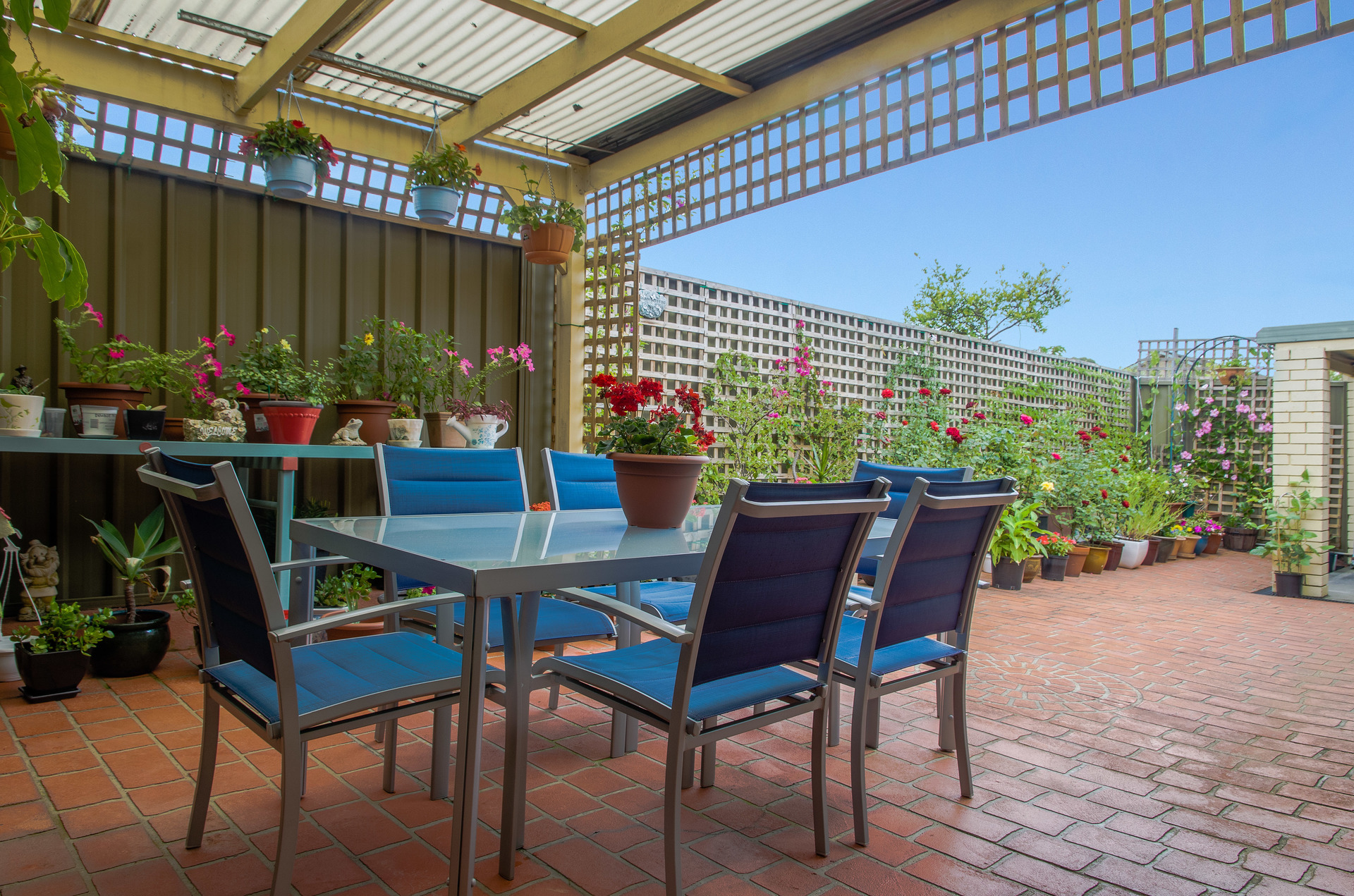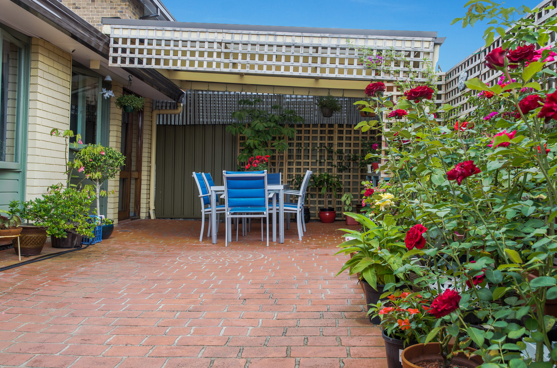 •Paved backyard with pergola for outdoor entertaining