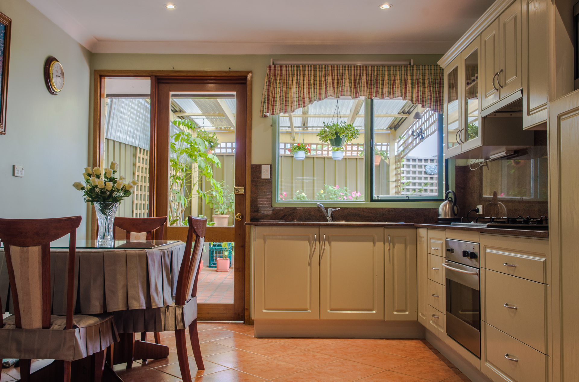 •Tiled flooring throughout the kitchen and living areas