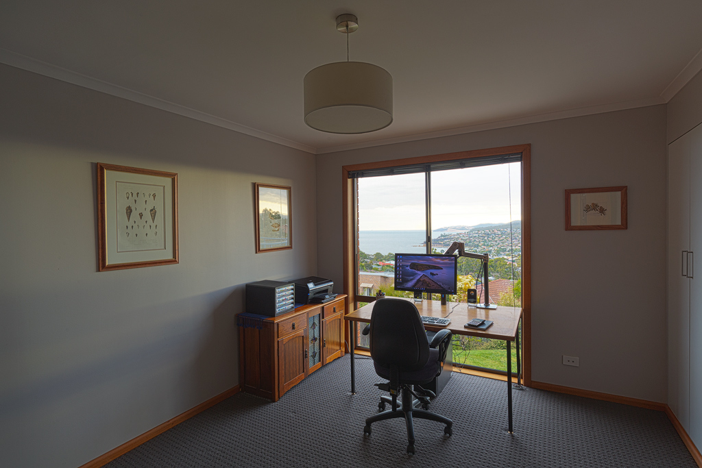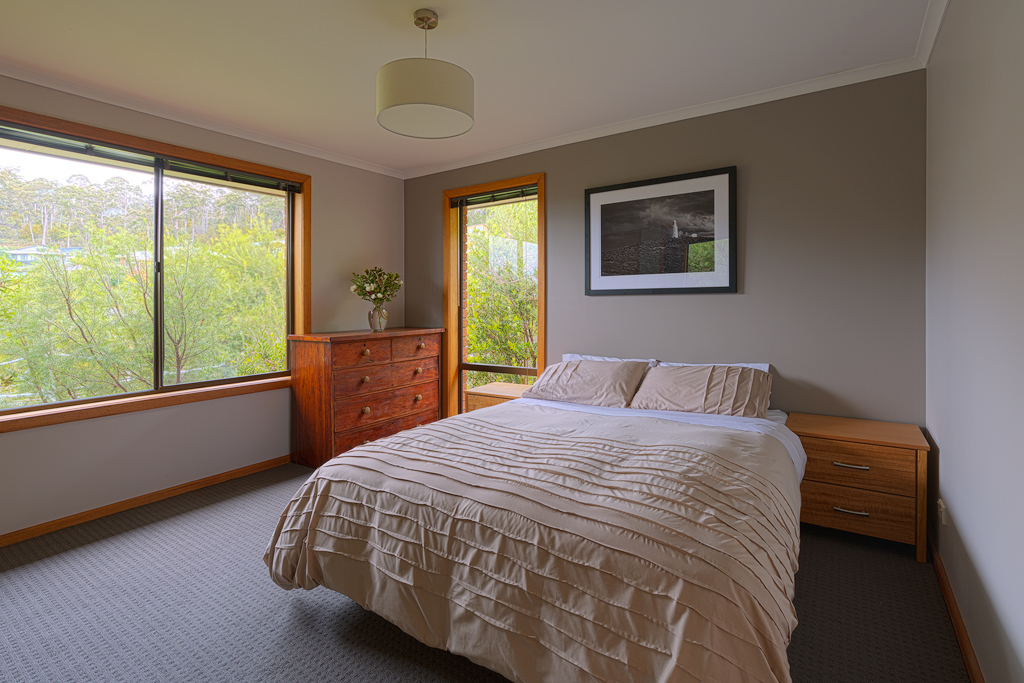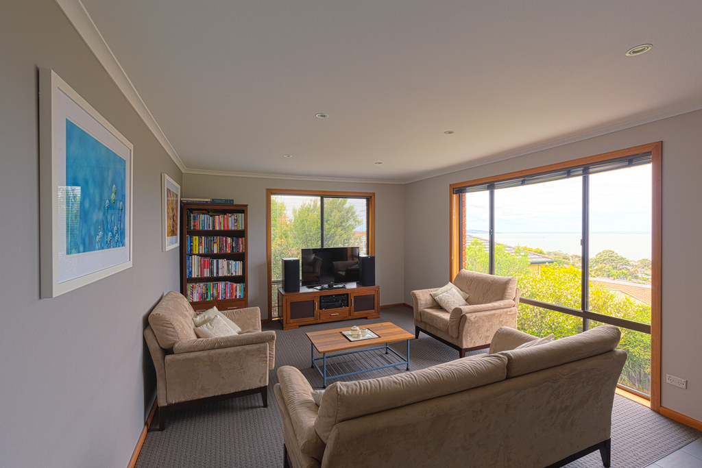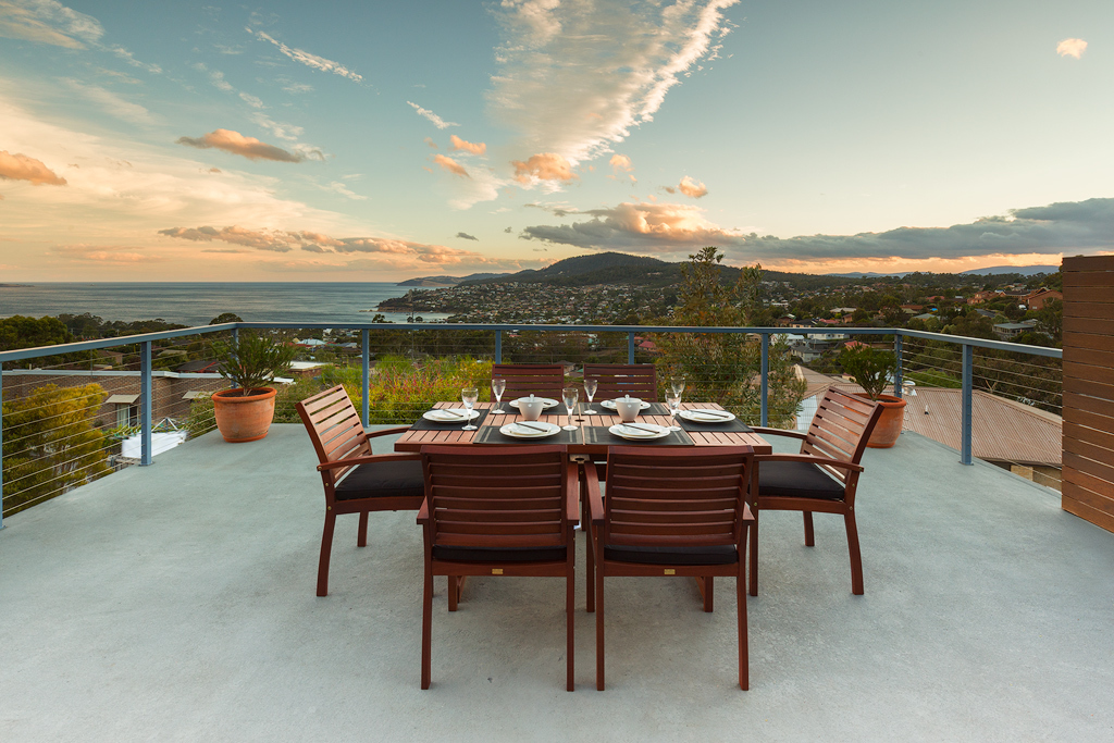 A massive deck makes the most of glorious views over the Derwent Estuary and South Arm, extending out to the Tasman Peninsula and Bruny Island. This provides a perfect space for entertaining family and friends, watching the impressive cruise ships making their way to the Port of Hobart, or following the Sydney-to-Hobart yachts as they enter the home strait.