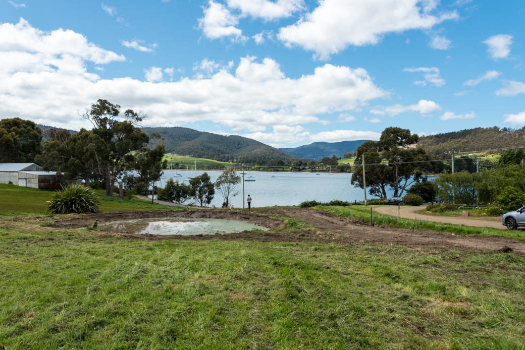 Just 2mins from centre of Cygnet this great half acre (2000m2) of prime land overlooking Cygnet bay, gentle slope small dam all cleared and ready to build. All town services, walk to the yacht club or take the boardwalk into town. Sit on your deck and watch the boats go by. Also available heavy duty mooring directly opposite the block. keep a eye on your boat from home. Included is a pic of the home we were going to build.