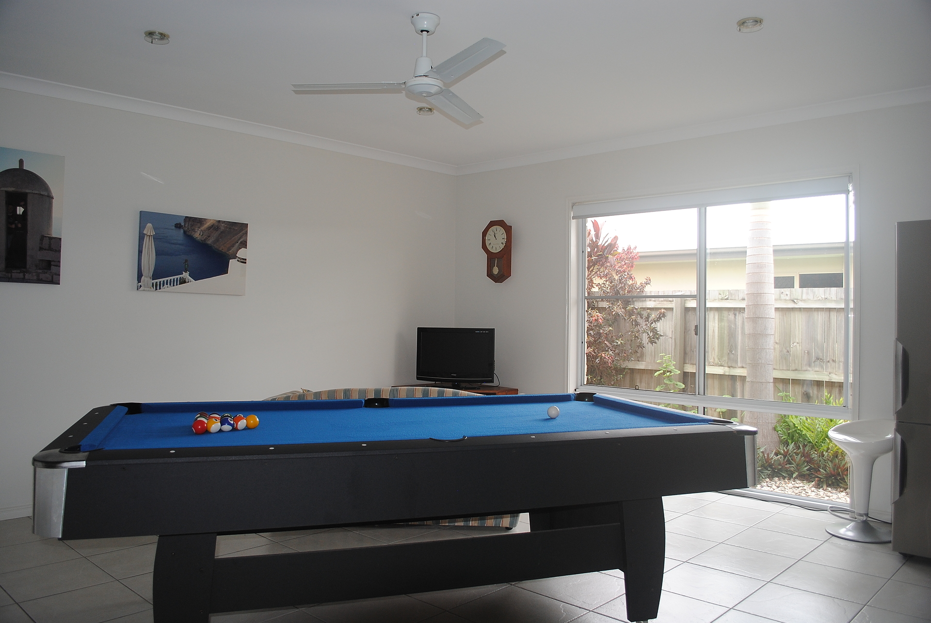 - Rumpus room with full wall of cupboards for storage