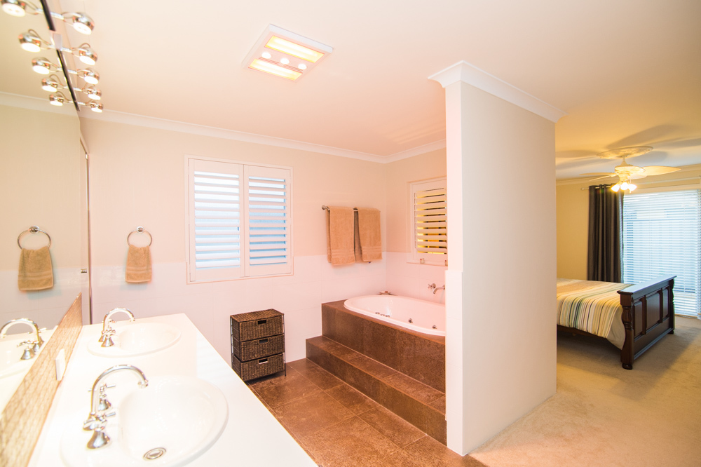 Fabulous large Master Bedroom / Bathroom combination with luxurious Spa bath. Discreet large his/hers walk-in robe. Direct access to paved courtyard.