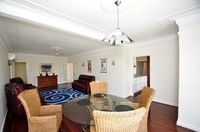 When you enter the first of two spacious living areas you immediately appreciate the beautiful wooden flooring and high ornate ceilings. A significant feature window showcases a view that has to be seen to be fully appreciated.