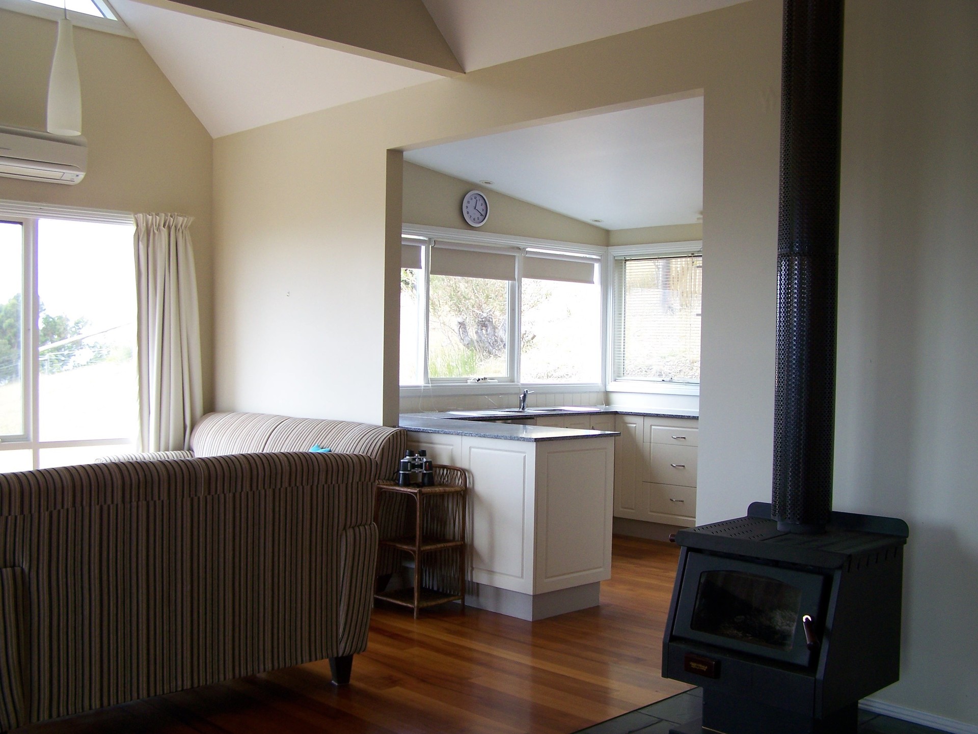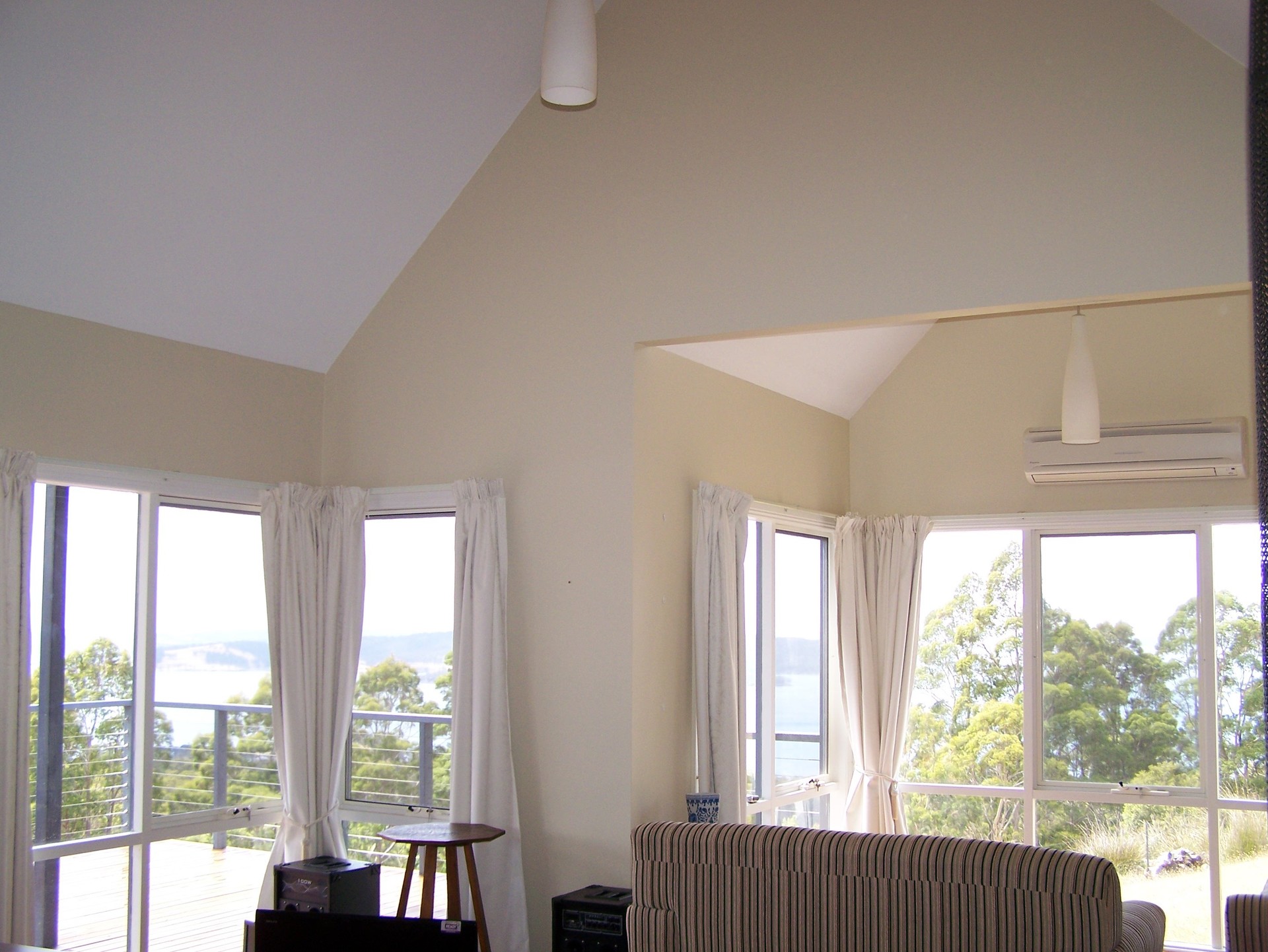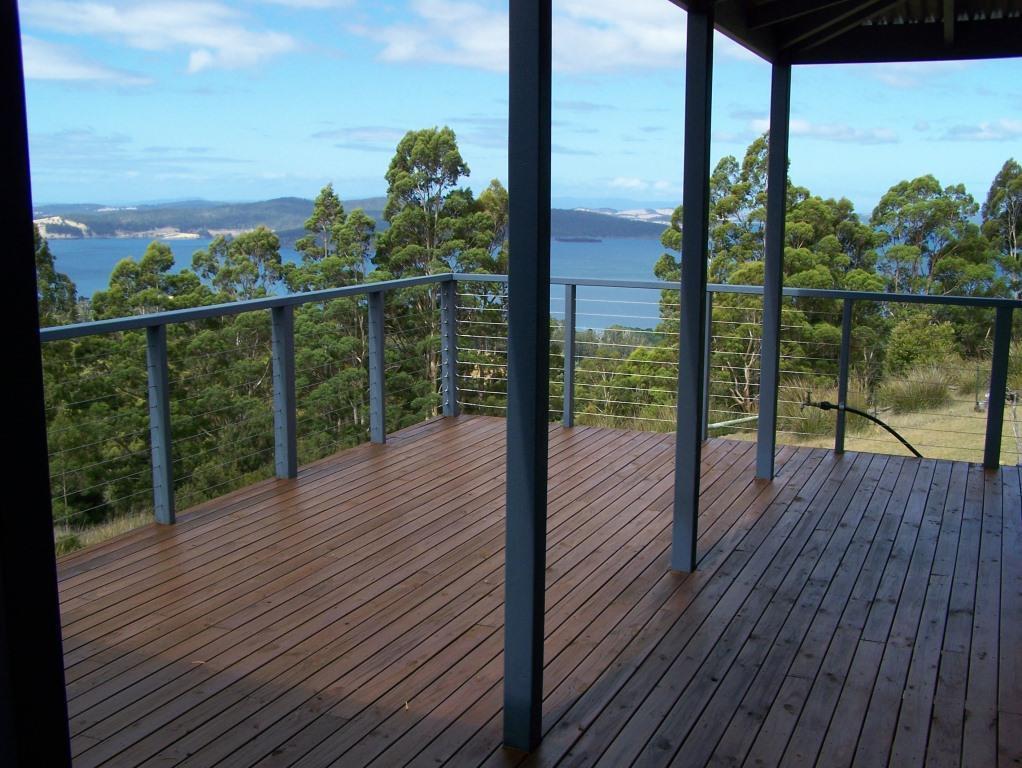 This property has a very lovely, modern house, only 10 years old. Facing north, with views encompassing Mt Wellington, all the way up the Channel to South Arm and the mountains beyond. Every room gets the view.